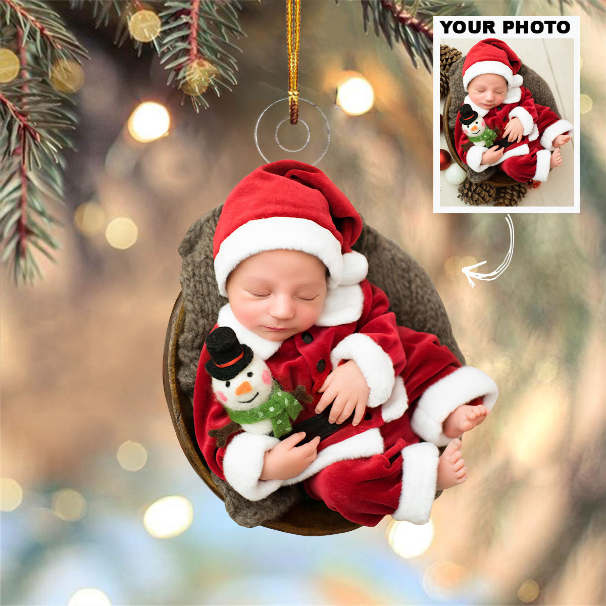Newborn Baby - Personalized Custom Photo Mica Ornament - Christmas Gift For Family, Family Members