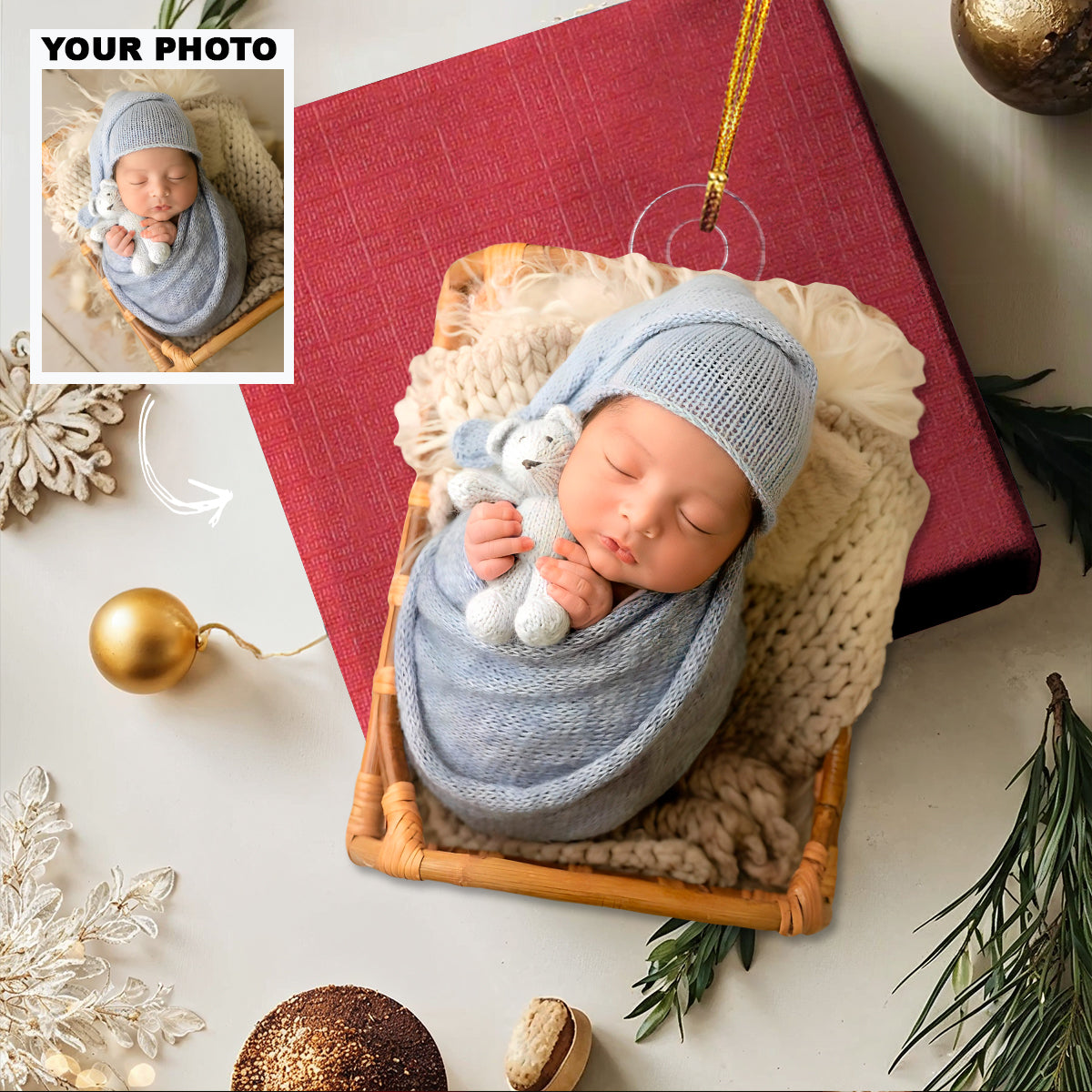 Welcome Baby - Personalized Photo Mica Ornament - Christmas Gift For Family Members