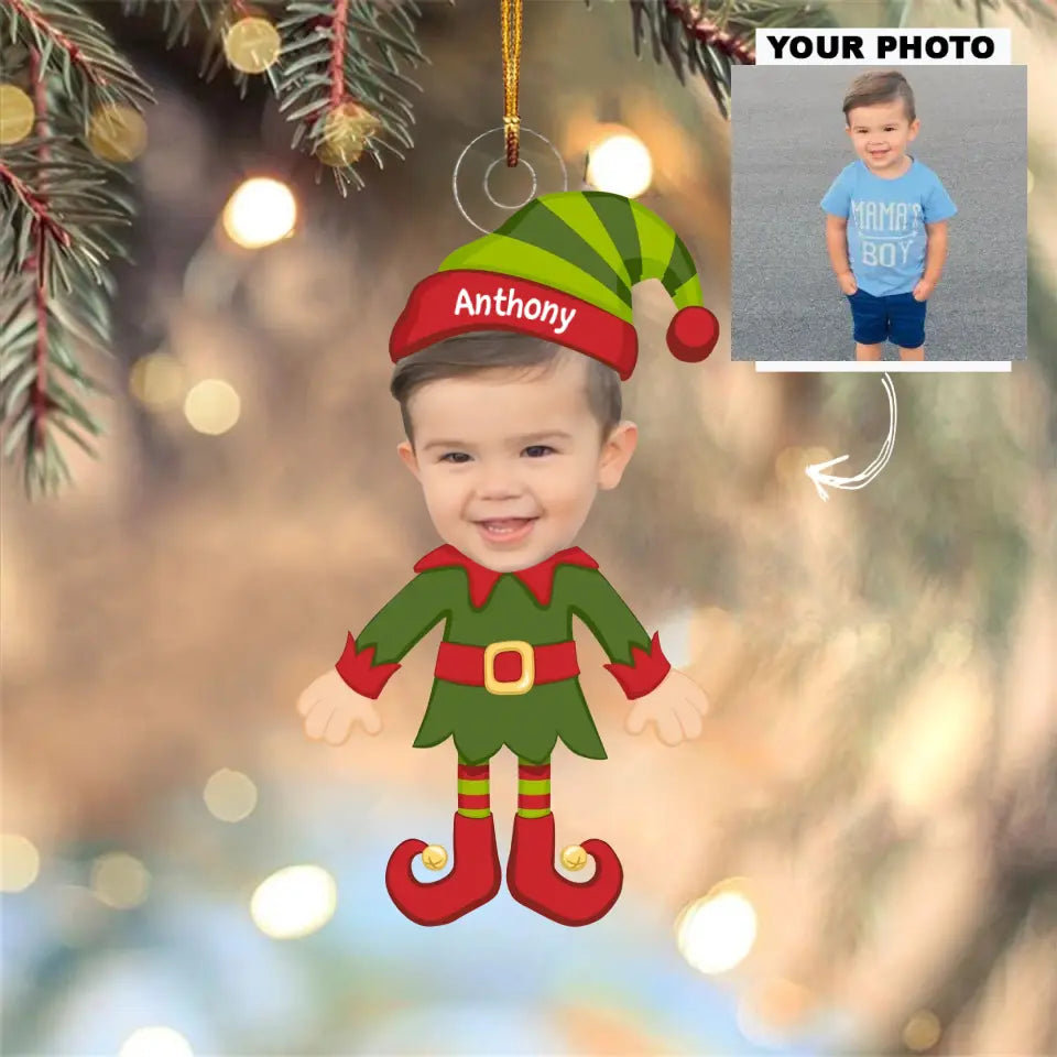 Elf Kids Christmas Photo - Personalized Custom Photo Mica Ornament - Christmas Gift For Baby, Kids, Family Members AGCDM009