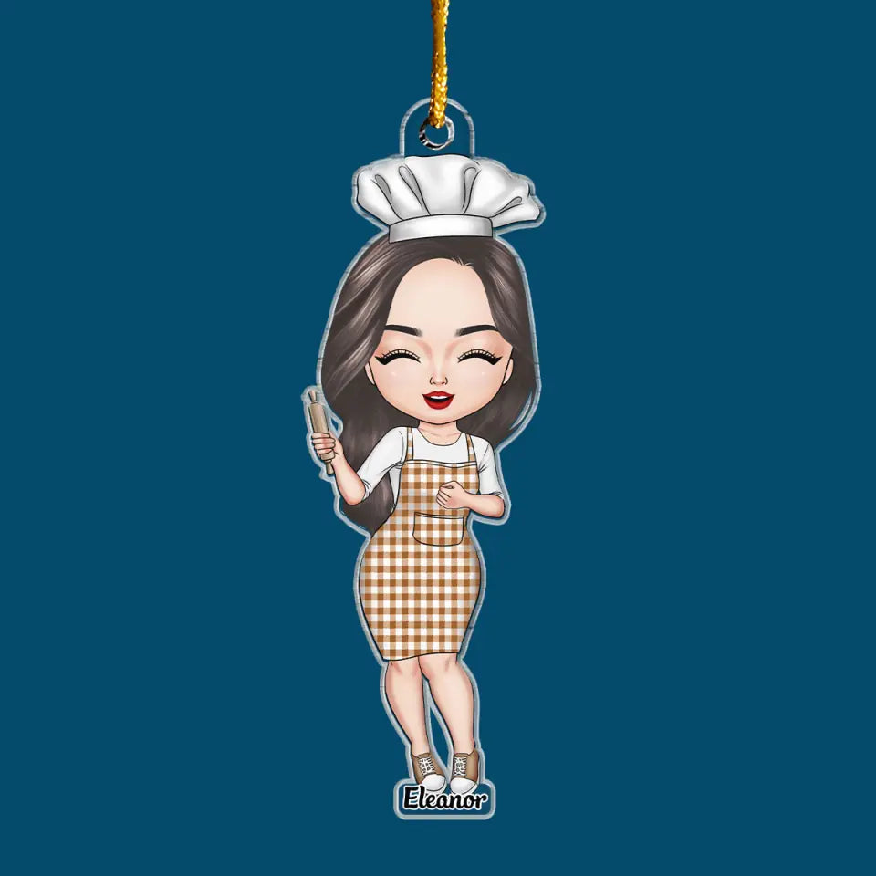 Waitress Chibi Ornament - Personalized Custom Mica Ornament - Christmas Gift For Waitress, Family Members, Mom, Grandma CLA0DM010