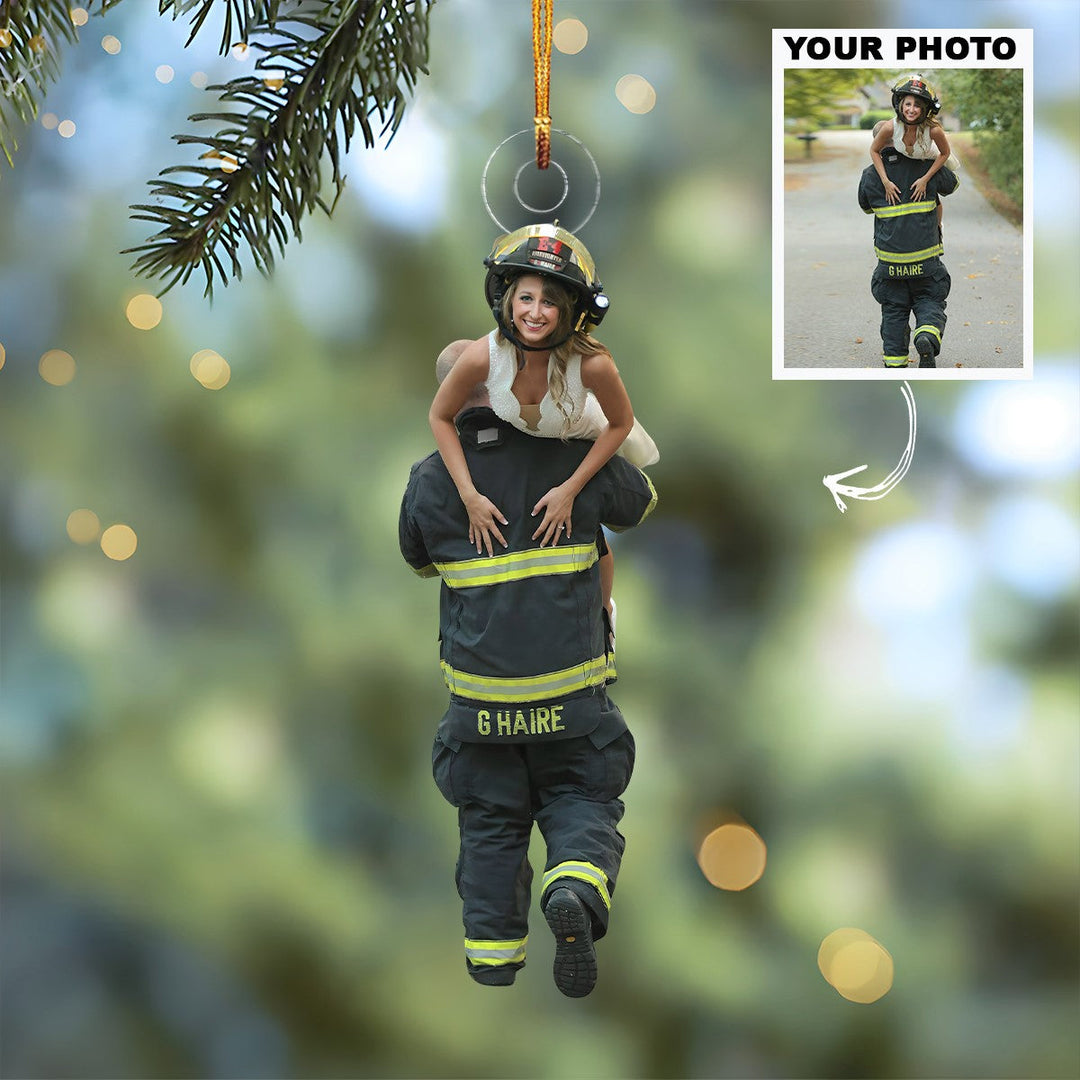 Heroic Love - Personalized Photo Mica Ornament - Christmas Gift For Firefighter