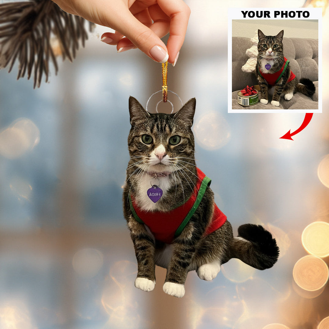 Cozy Cat Charm - Personalized Photo Mica Ornament - Christmas Gift For Pet Lovers