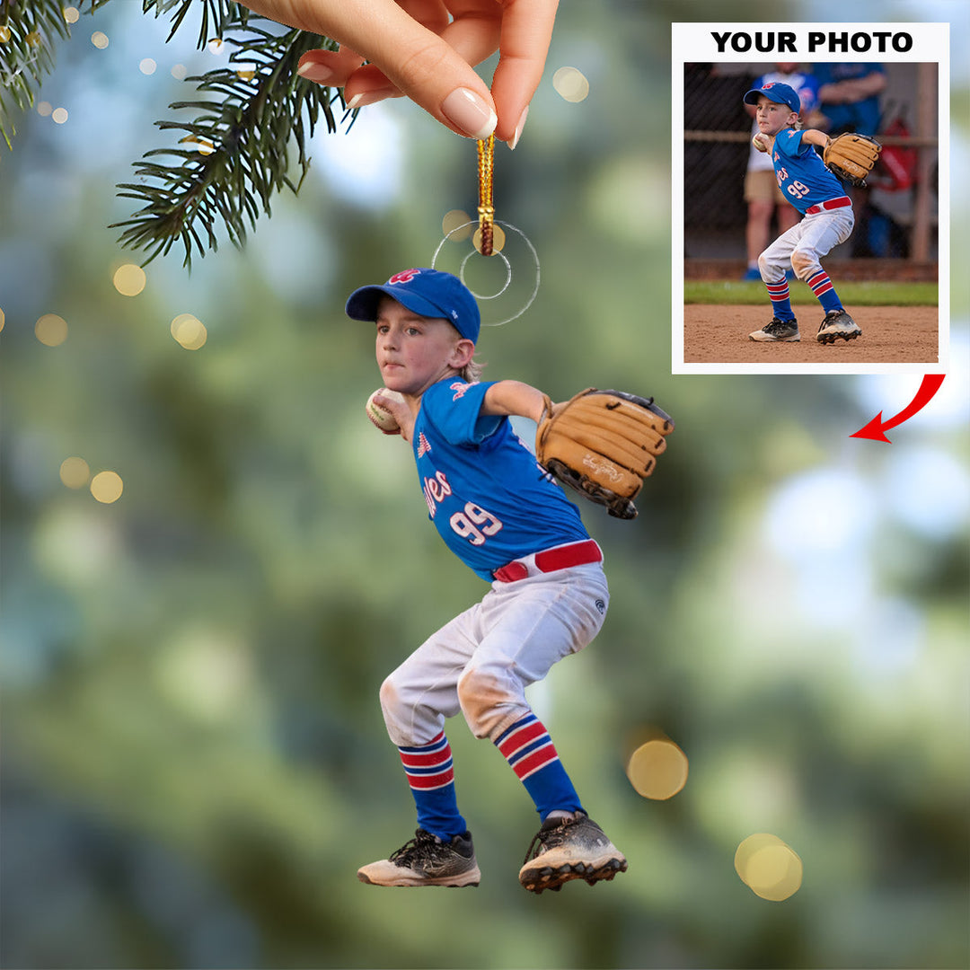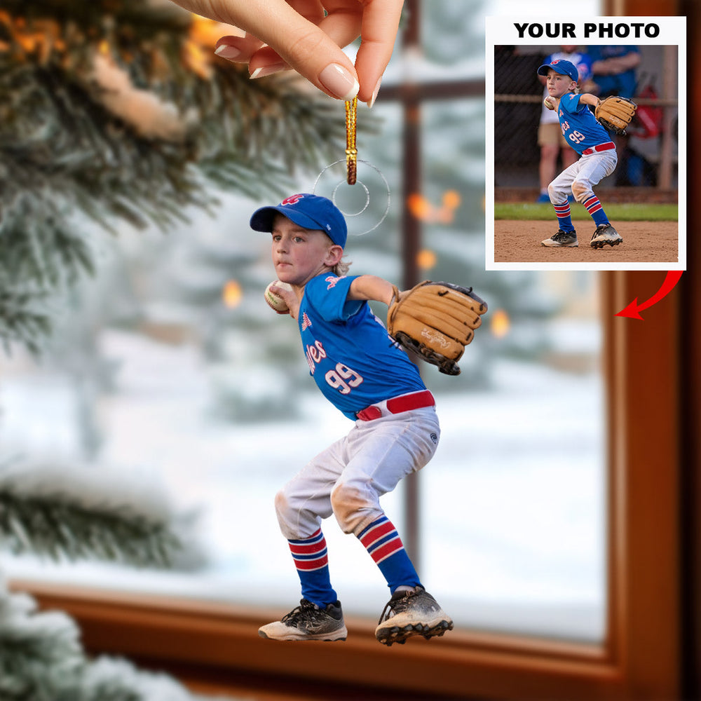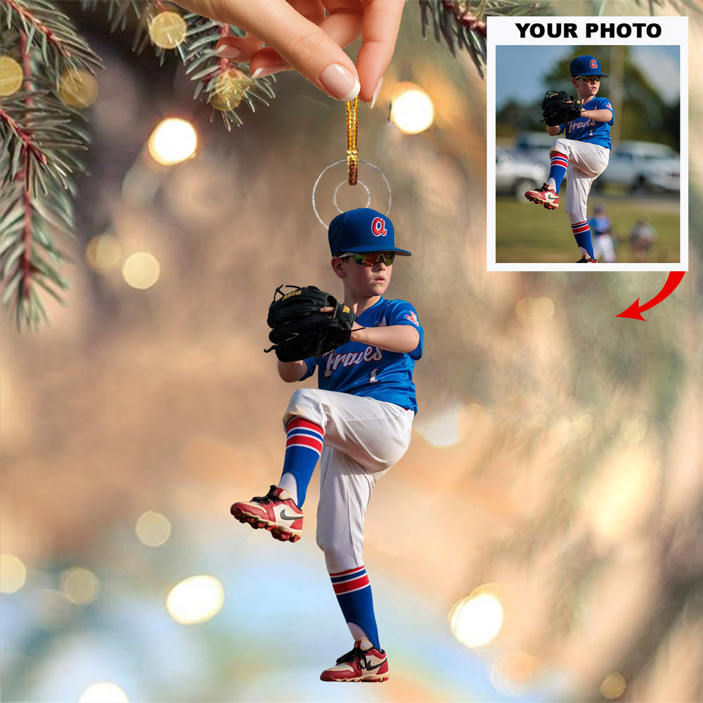 Pitch Young Warrior - Personalized Photo Mica Ornament - Christmas Gift For Sport Loving Kids