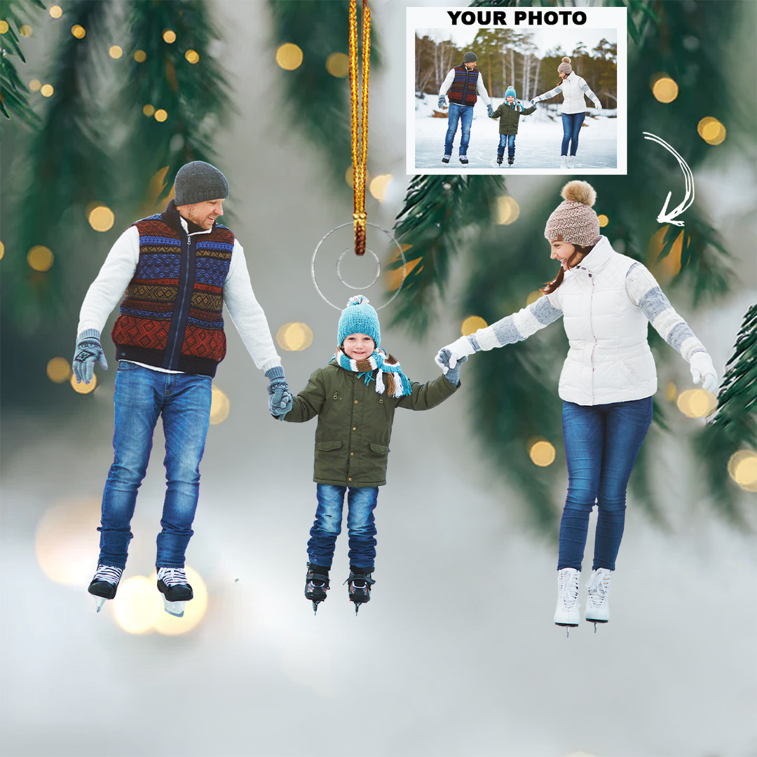 Family Go Ice Skating - Personalized Custom Photo Mica Ornament - Christmas Gift For Family, Family Members
