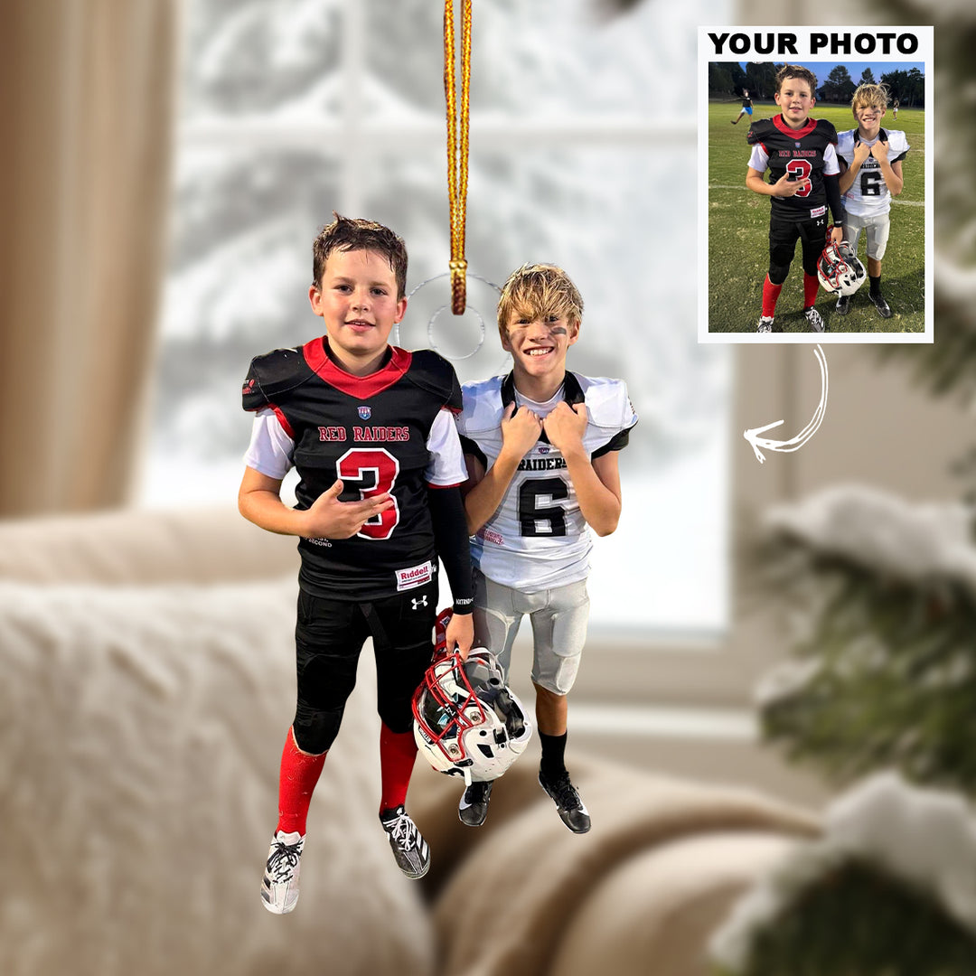 Field Warriors - Personalized Photo Mica Ornament - Christmas Gift For Football Lovers