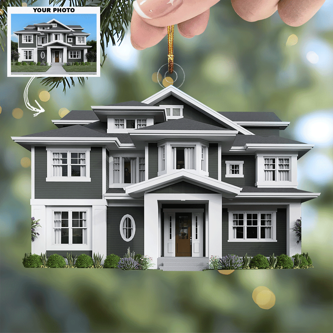 New House Charm - Personalized Photo Mica Ornament - Christmas Gift For Family Members