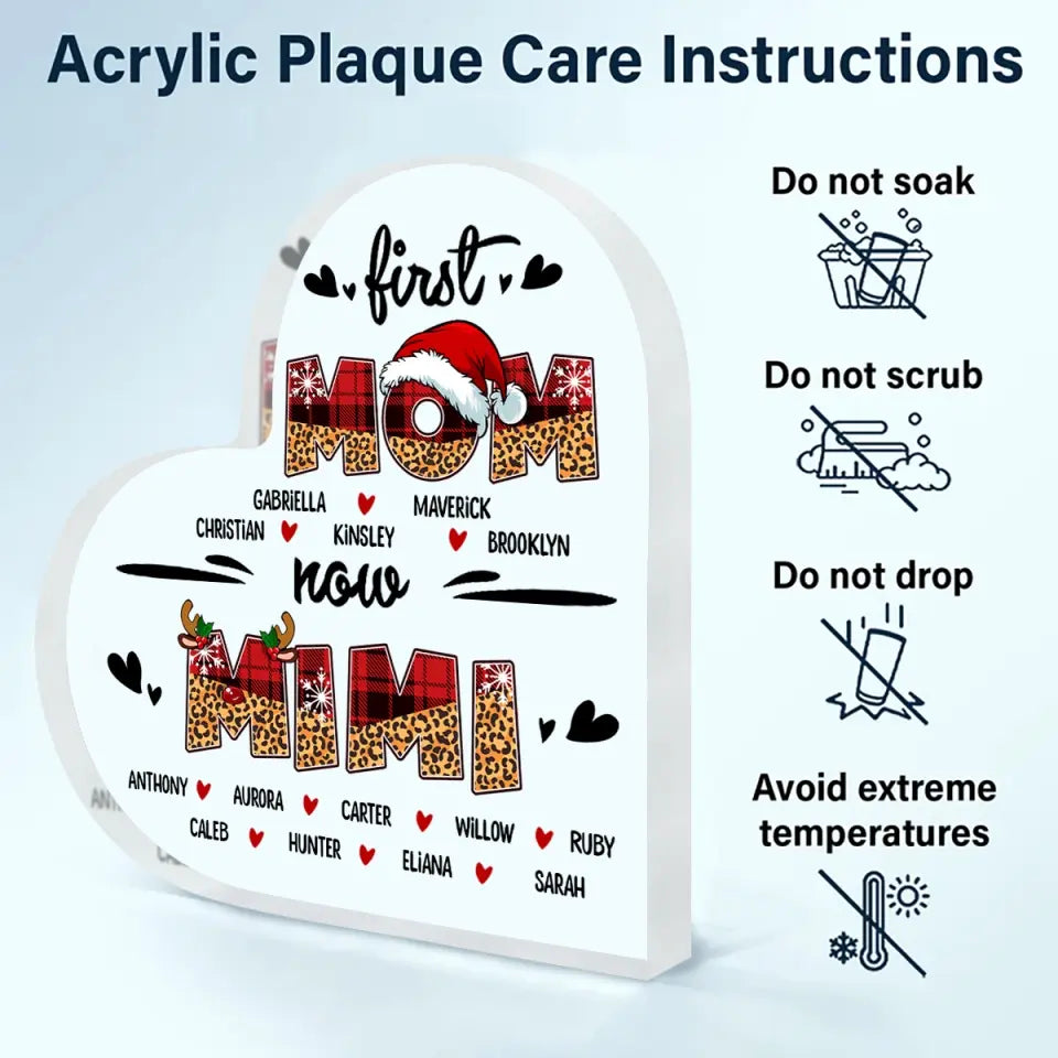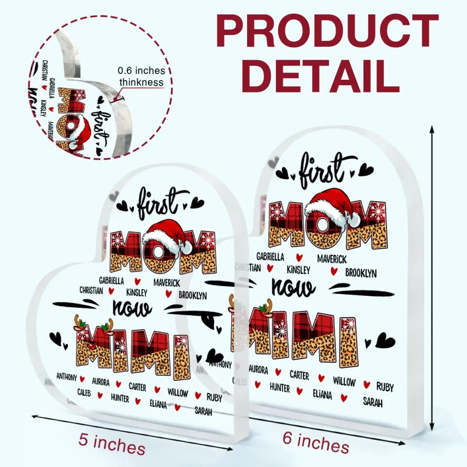 First Mom Now Grandma Christmas Version - Personalized Custom Heart-shaped Acrylic Plaque - Christmas Gift For Grandma, Mom