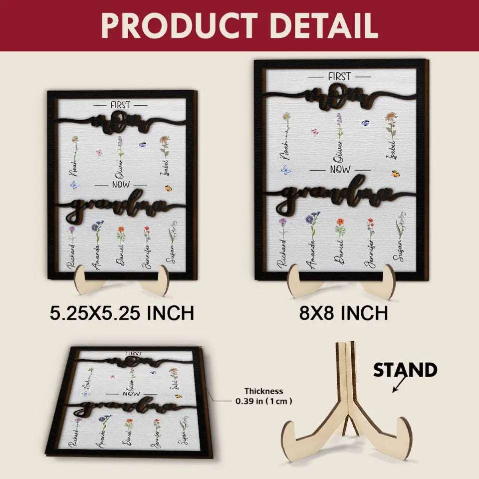 First Mom Now Grandma - Personalized Custom 2-Layer Wooden Plaque - Gift For Grandma