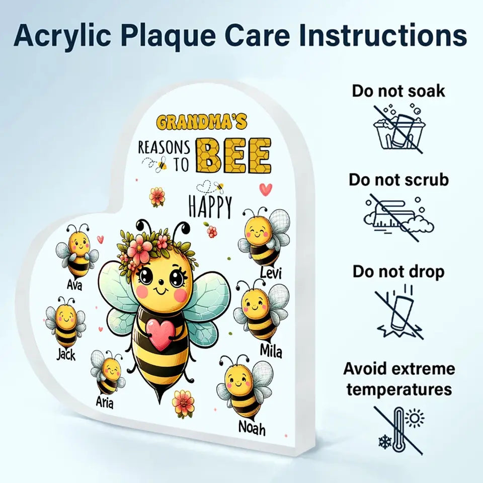 Grandma's Reasons To Be Happy - Personalized Custom Heart-shaped Acrylic Plaque -  Mother's Day Gift For Grandma