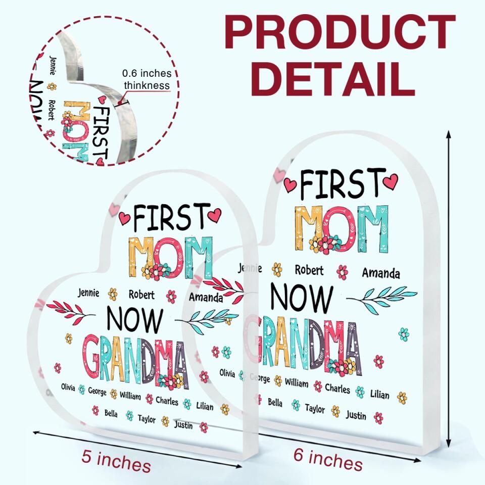 Personalized Heart-shaped Acrylic Plaque - Gift For Mom & Grandma - First Mom Now Grandma ARND018
