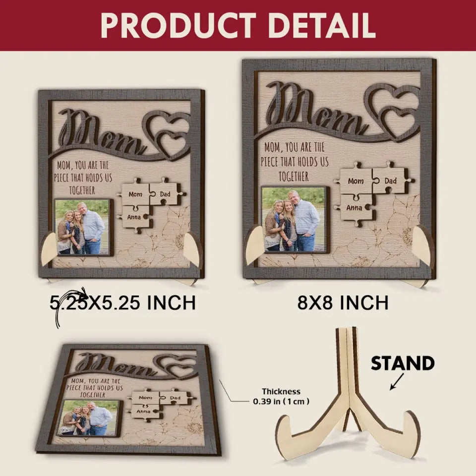 You Are The Piece That Holds Us - Personalized Custom 2-Layer Wooden Plaque - Mother's Day Gift For Family Members, Grandma, Mom