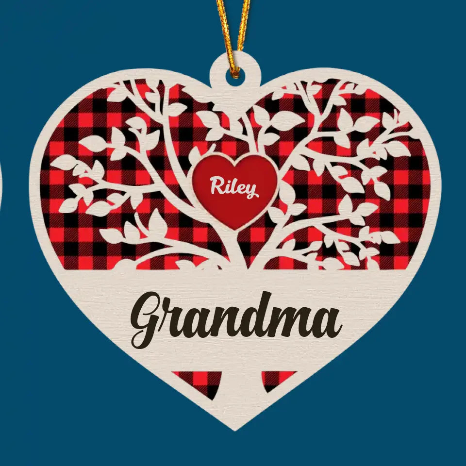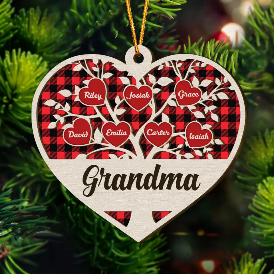 Family Tree Heart Grandkids - Personalized Custom Layer Wood Ornament - Christmas Gift For Grandma, Mom, Family Members