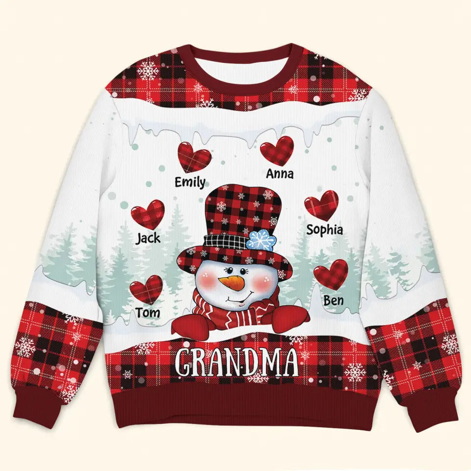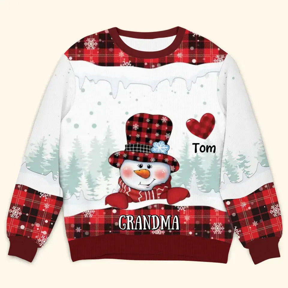 Grandma Snowman Heart - Personalized Custom Ugly Sweater - Christmas Gift For Grandma, Mom, Family Members