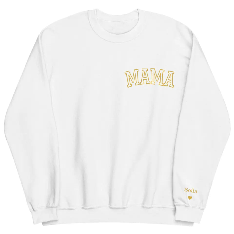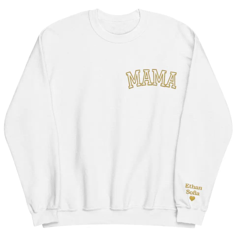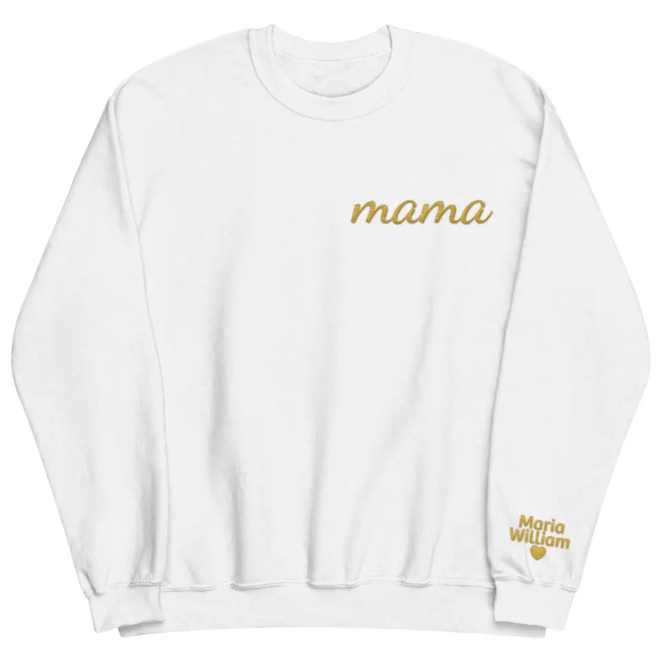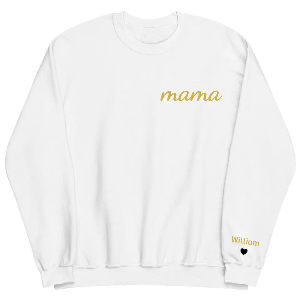 Mama And Kid's Name On Sleeve - Personalized Custom Embroidered Sweatshirt - Gift For Mom, Family Members
