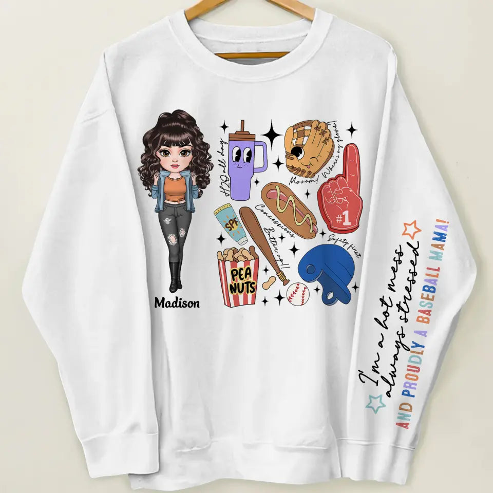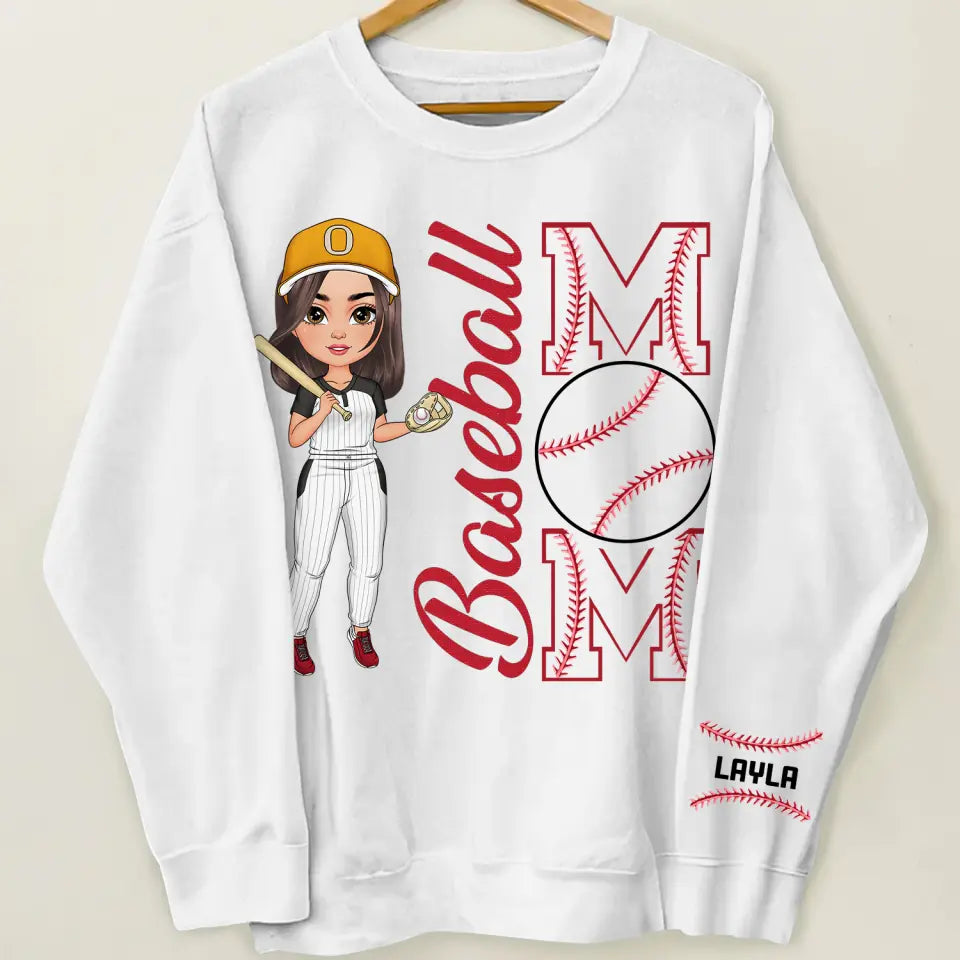 Baseball Mom - Personalized Custom Sweatshirt With Sleeves Imprint - Mother's Day, Gift For Mom