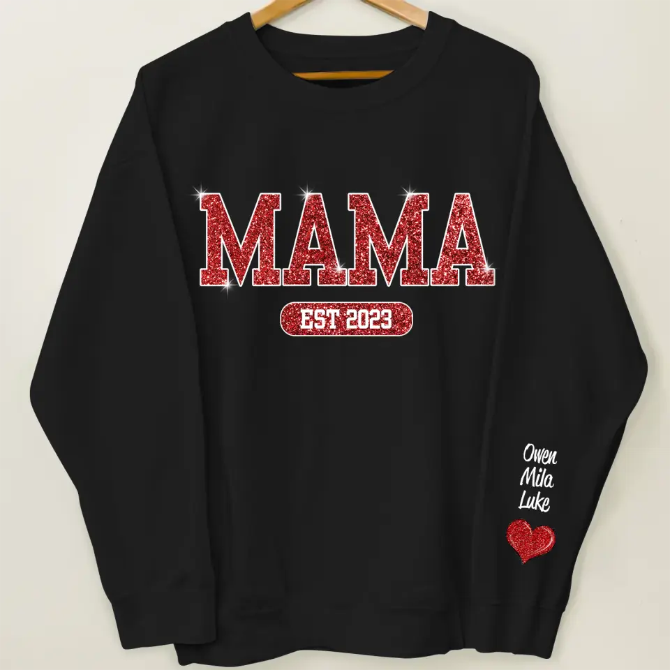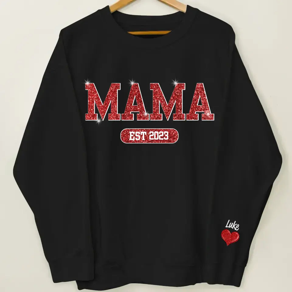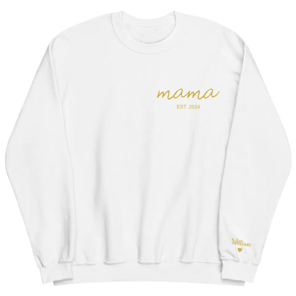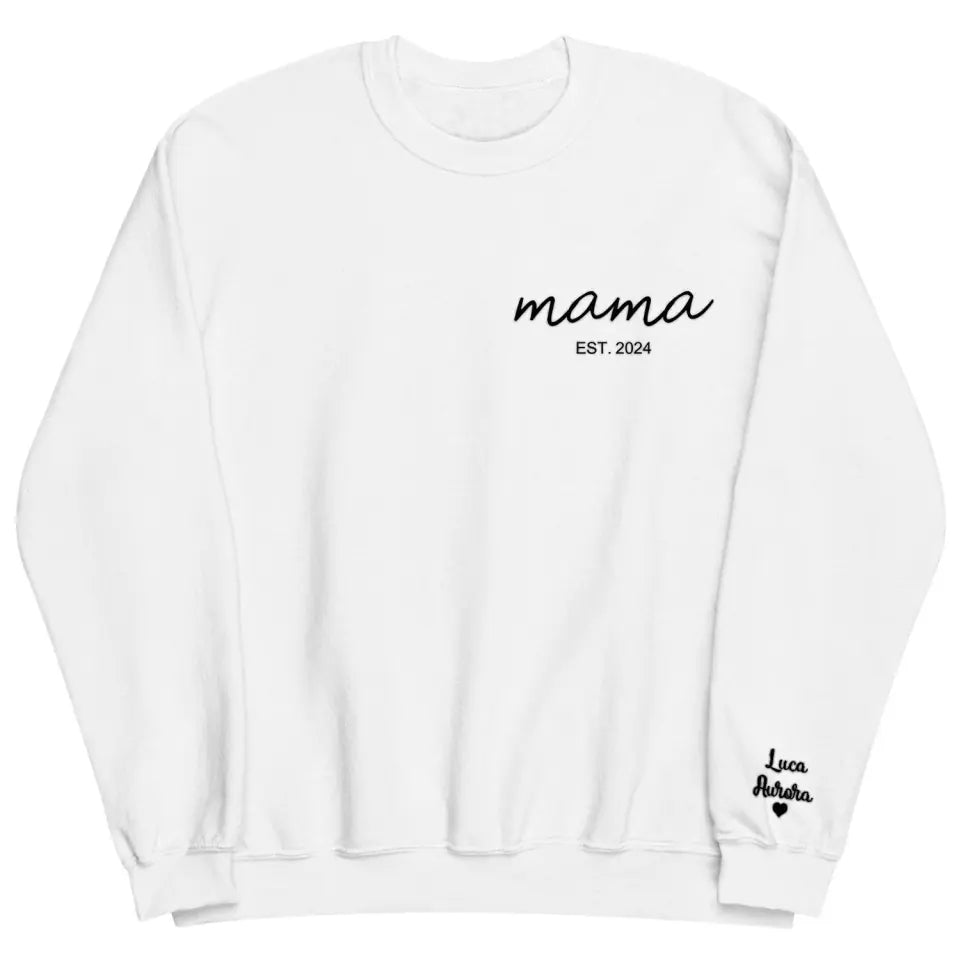 Mama Est Year Kids On Sleeve - Personalized Custom Embroidered Sweatshirt - Gift For Mom, Family Members
