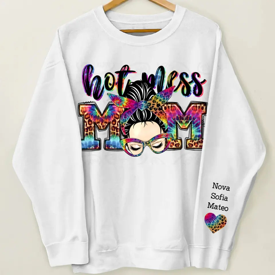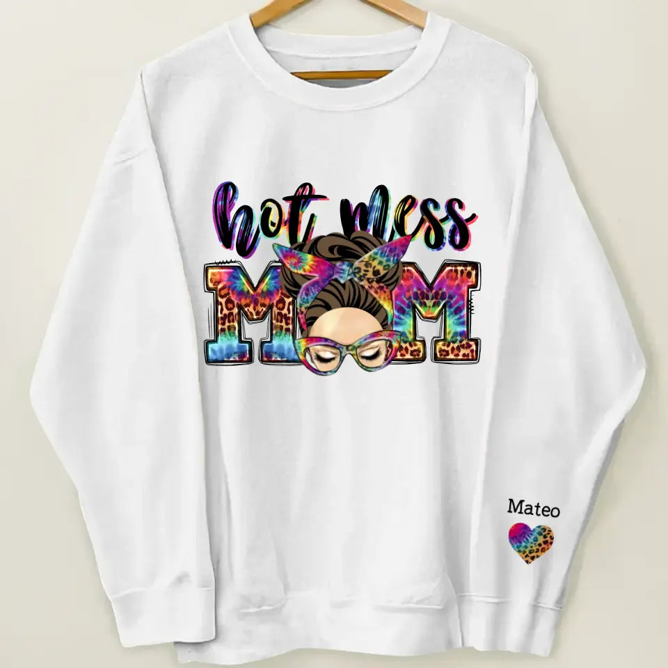 Hot Mess Mom - Personalized Custom Sweatshirt - Gift For Mom, Family Members