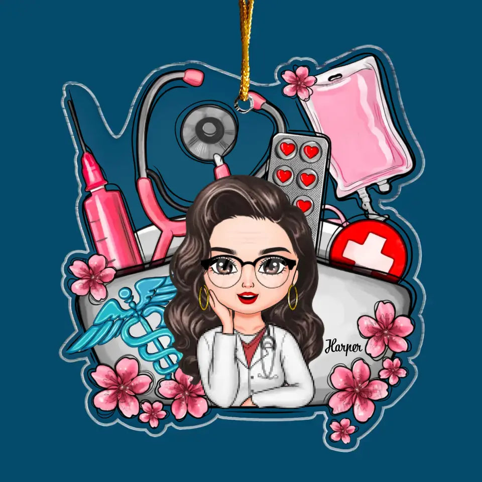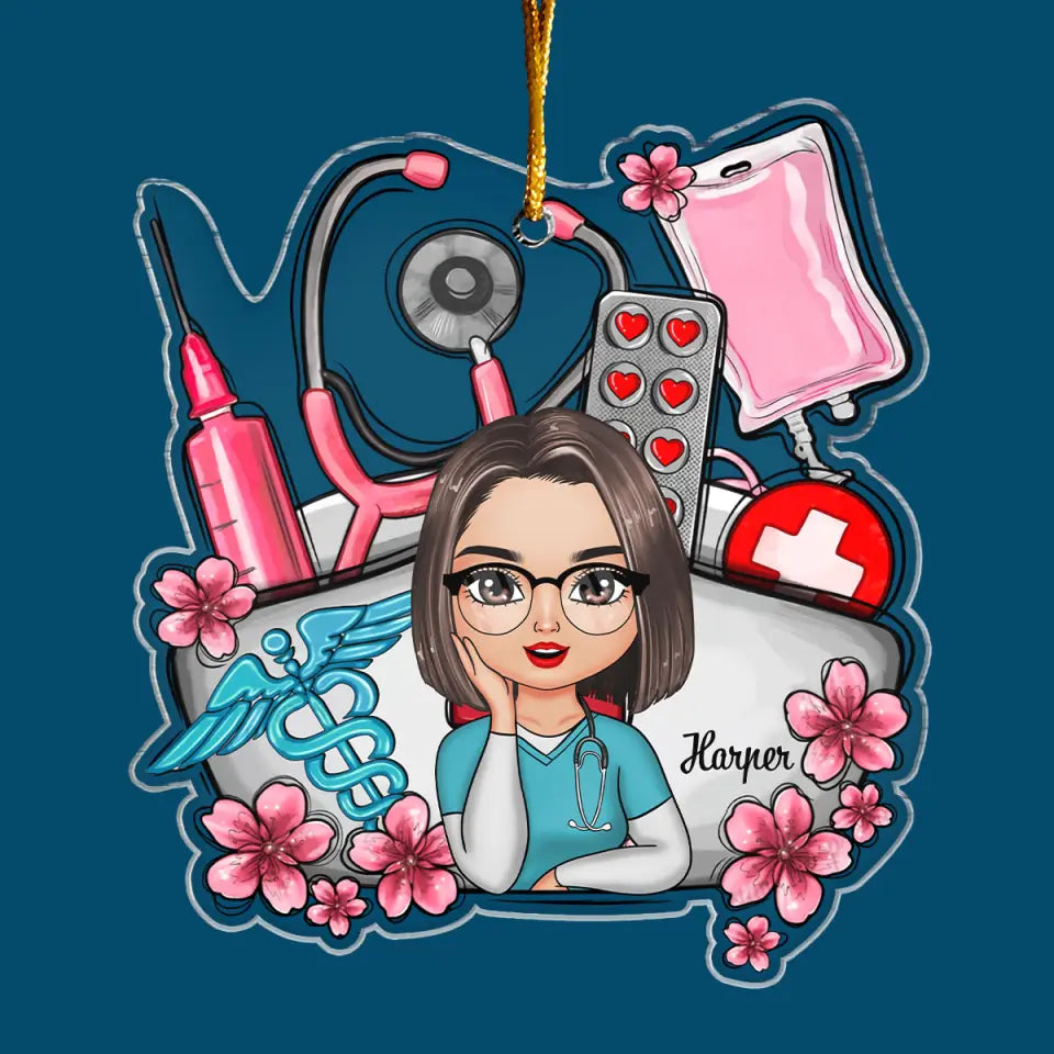 Floral Nurse Hat - Personalized Custom Mica Ornament - Nurse's Day, Appreciation, Christmas Gift For Nurse