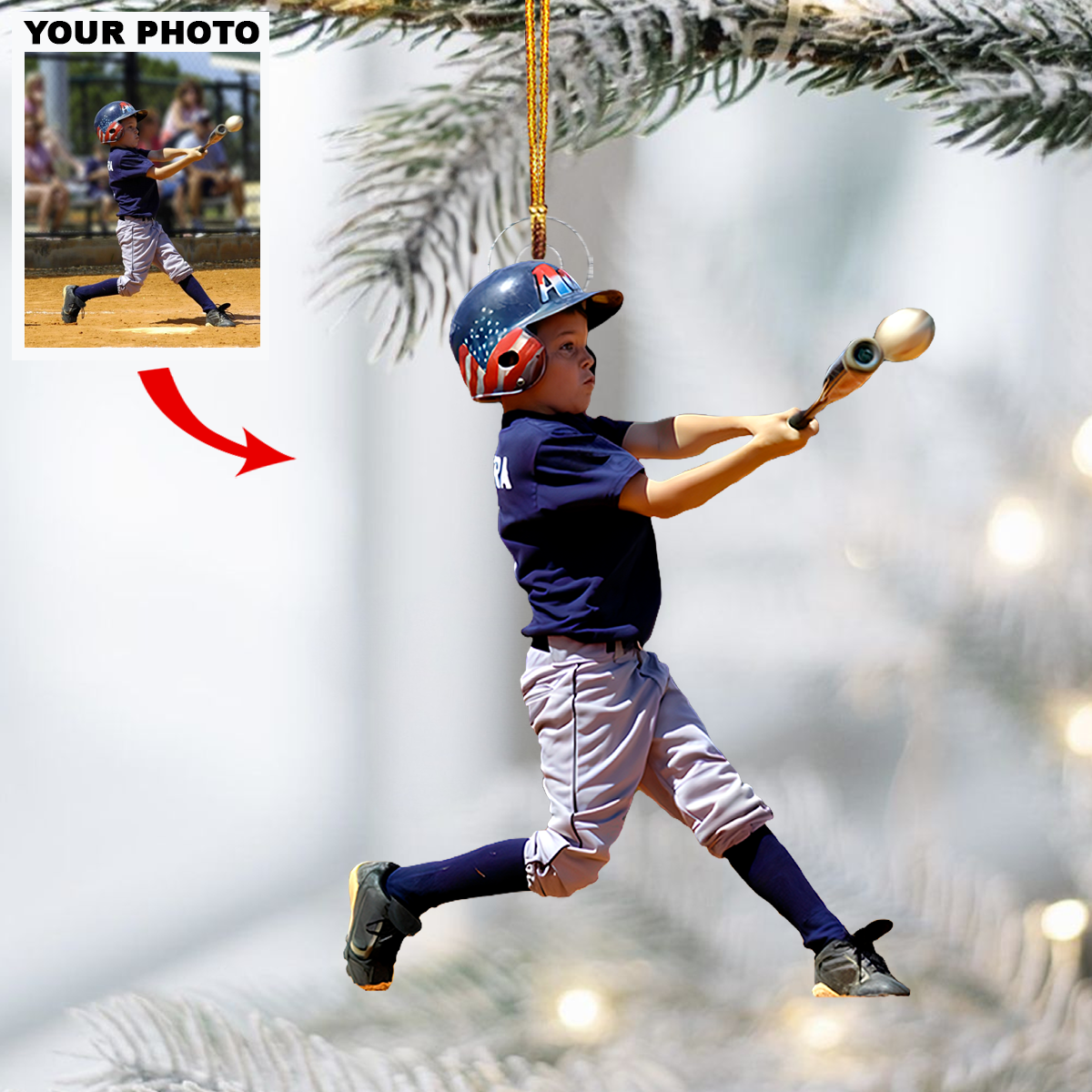 Kids Baseball - Personalized Photo Mica Ornament - Christmas Gift For Children, Baseball Players