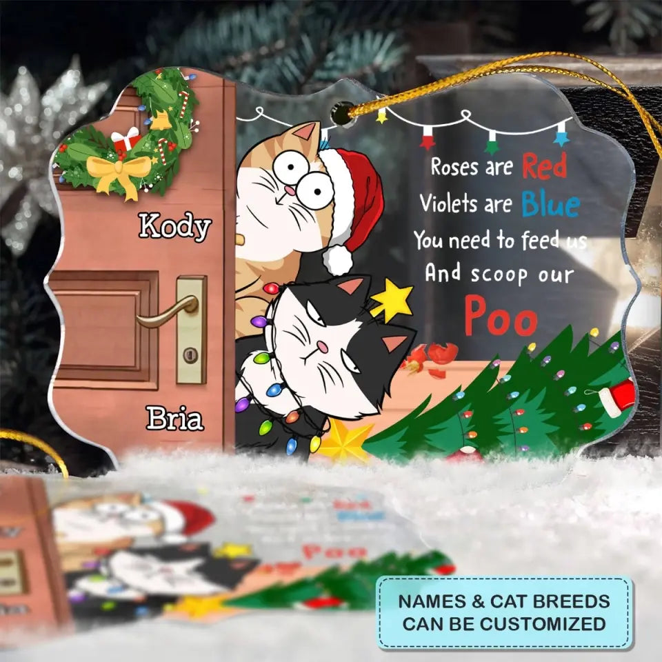 Roses Are Red Violets Are Blue You Need To Feed Us - Personalized Custom Mica Ornament - Christmas Gift For Cat Mom, Cat Dad, Cat Lover, Cat Owner