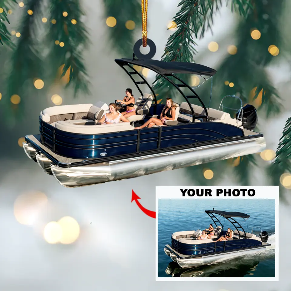 Personalized Photo Mica Ornament - Gift For Pontoon Lover - Pontoon Friends ARND018