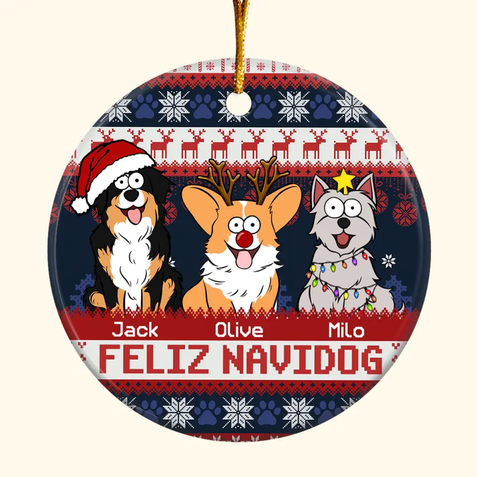 Feliz Navidog - Personalized Custom Ceramic Ornament - Christmas Gift For Dog Mom, Dog Dad, Dog Lover, Dog Owner