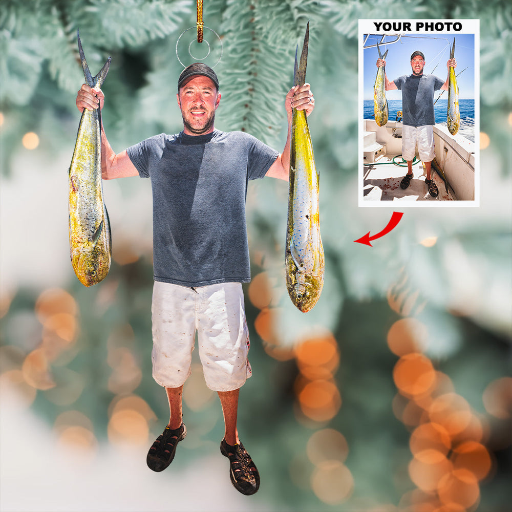 Big Fish - Personalized Photo Mica Ornament - Gift For Fishing Lovers, Family Members