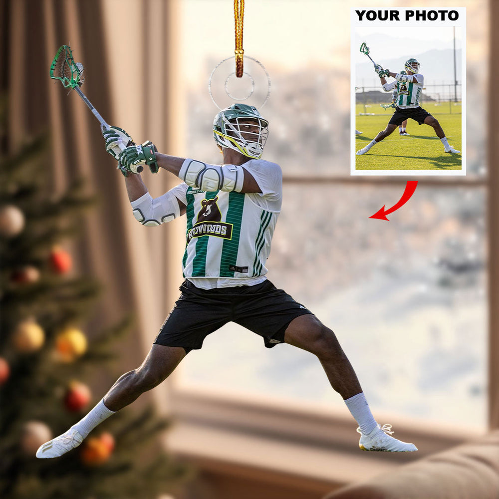 Lax & Lights - Personalized Photo Mica Ornament - Christmas Gift For Sports Lovers