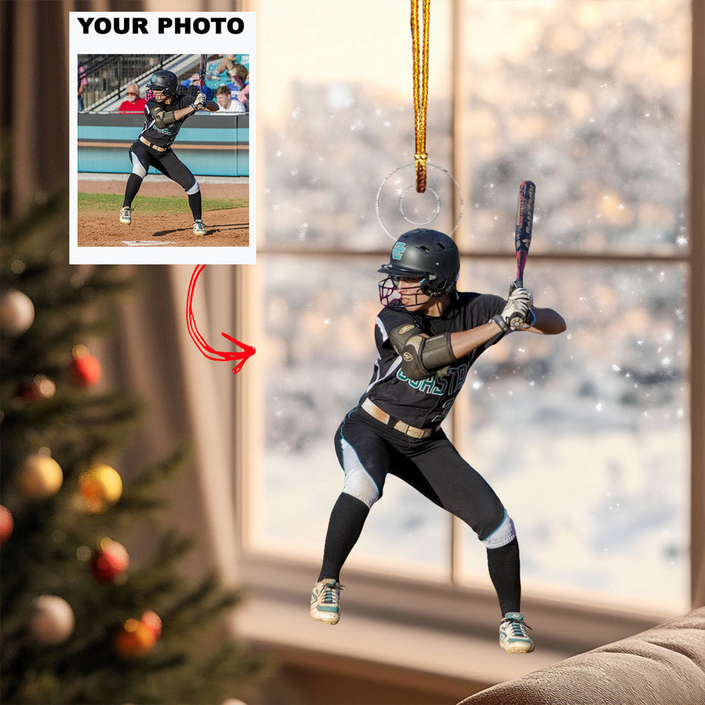 Sunny Sparkles - Personalized Photo Mica Ornament - Christmas Gift For Baseball Players, Baseball Lovers