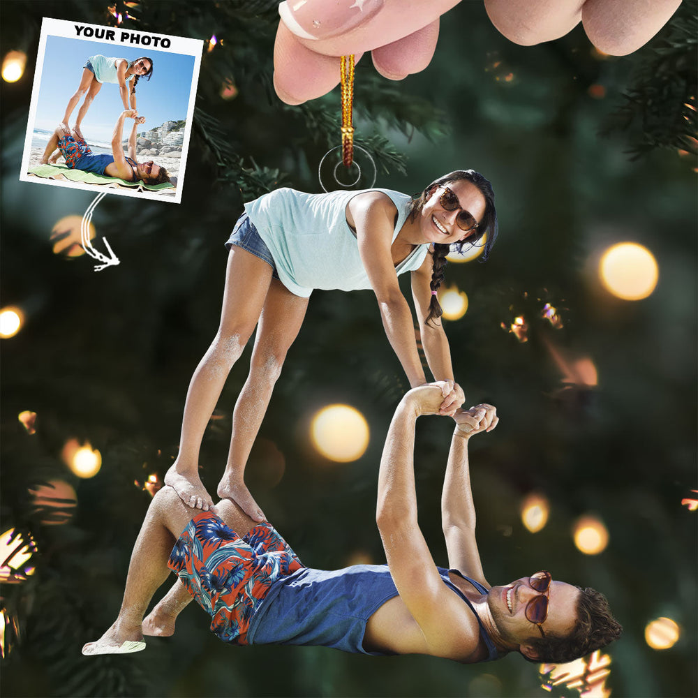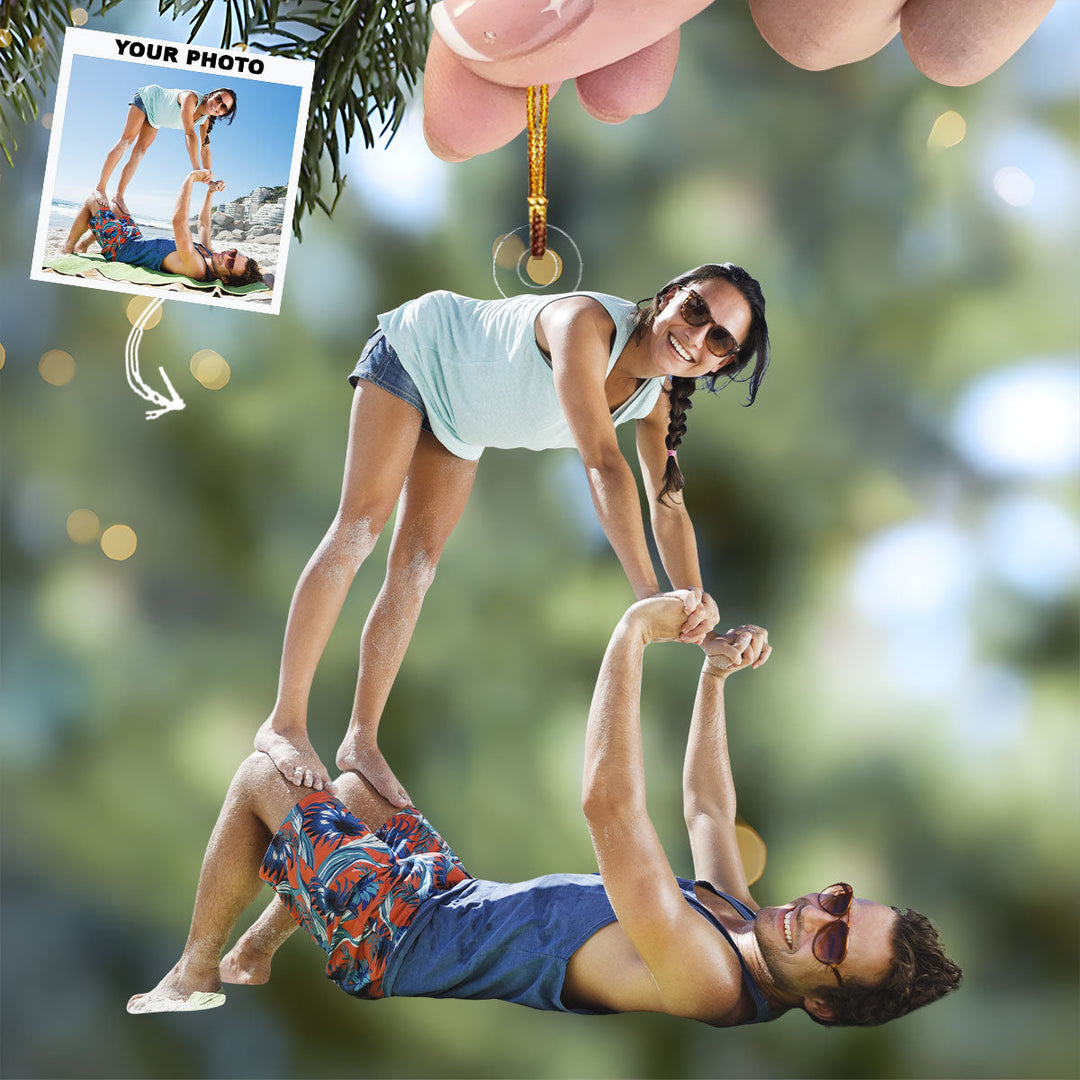 Lifted By Laughter - Personalized Photo Mica Ornament - Christmas Gift For Couple, Family Members