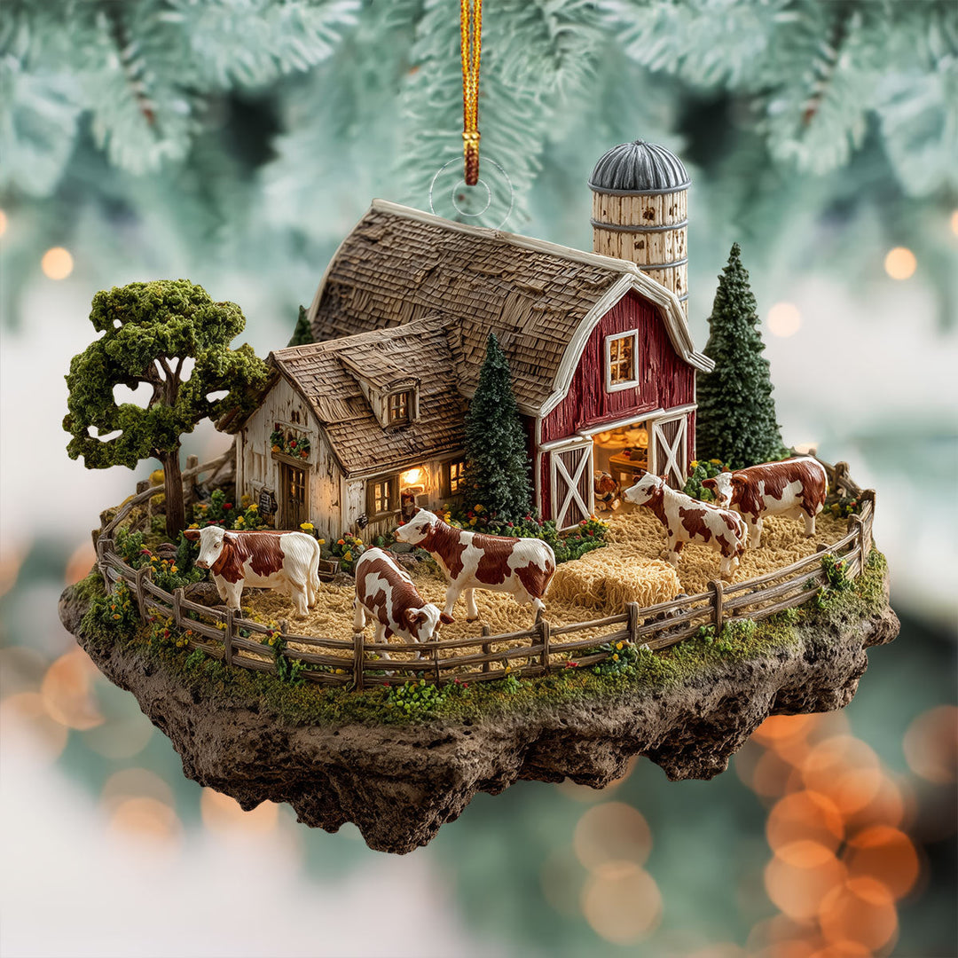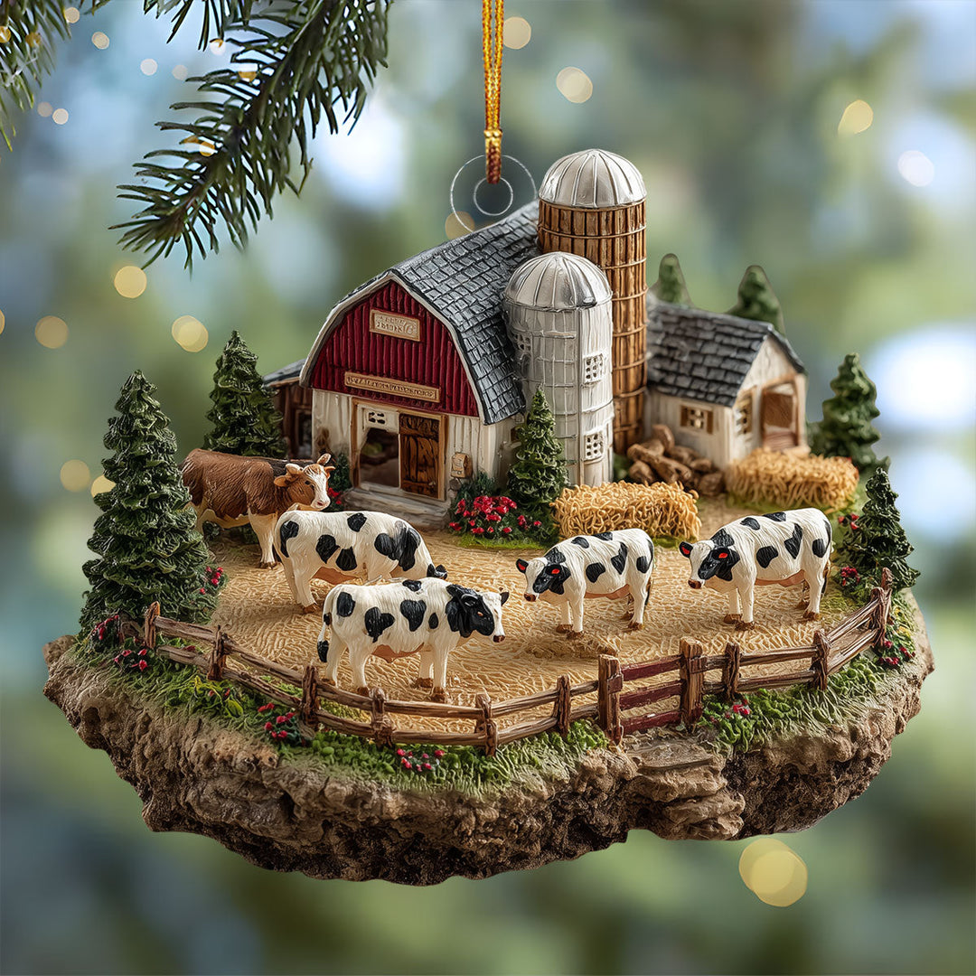Farmhouse Cow Barn Mica Ornament NCU0NL10