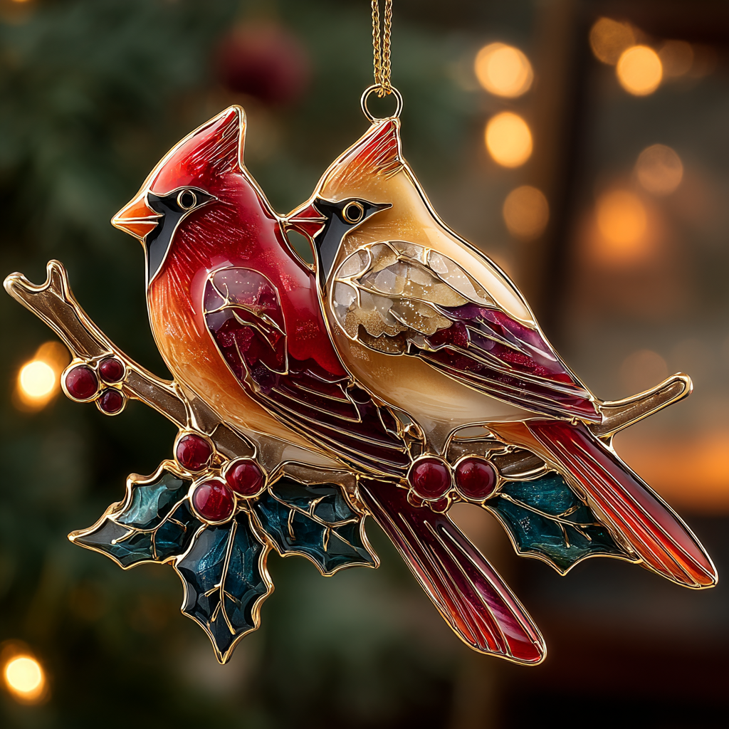 Holly Pair Mica Ornament NCU0DH005