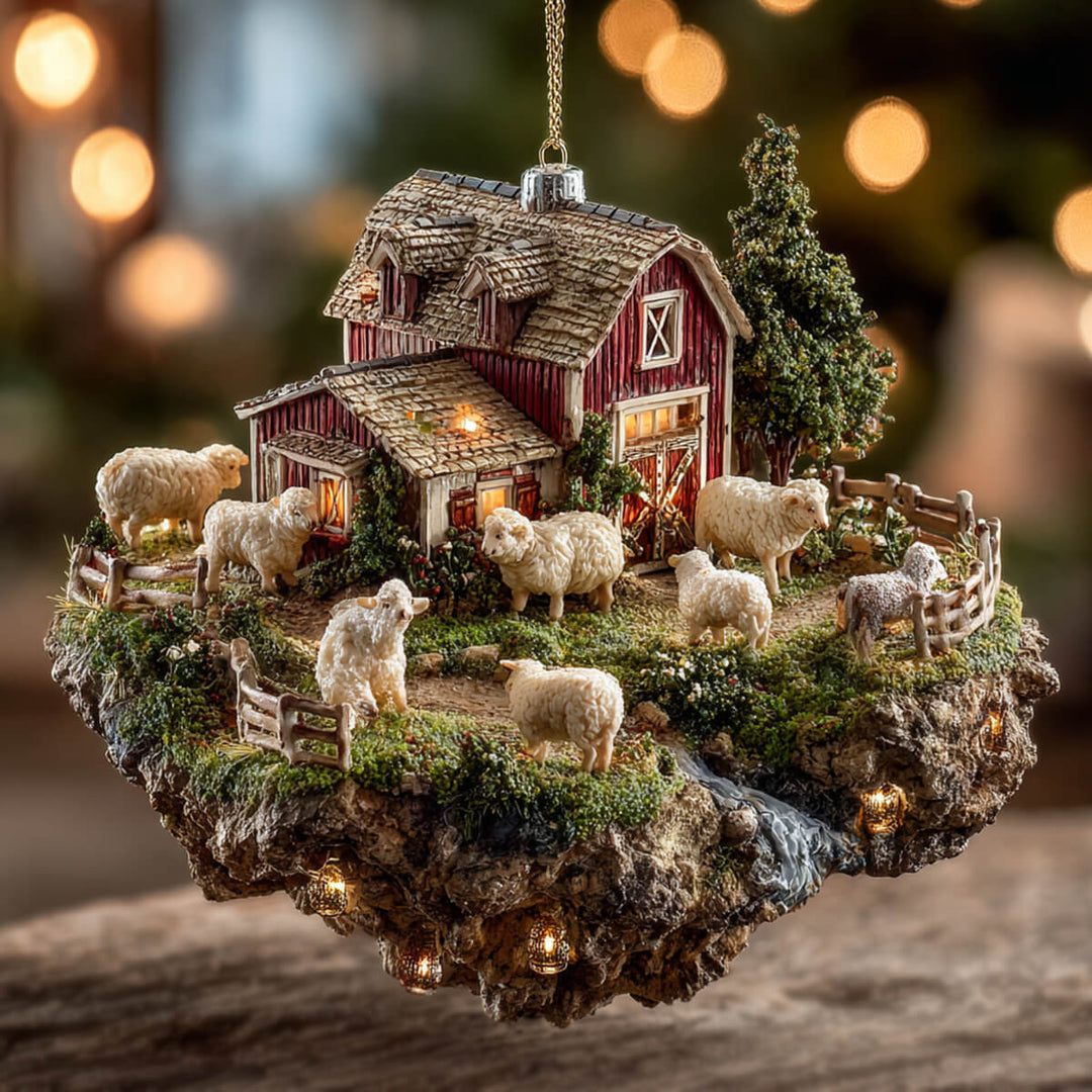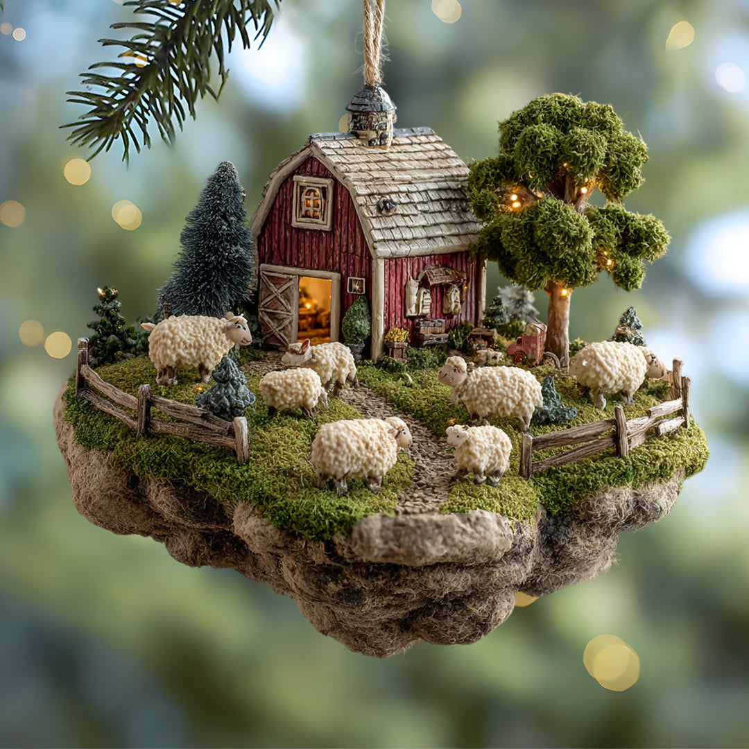 Cozy Sheep Barn Mica Ornament NCU0NL04