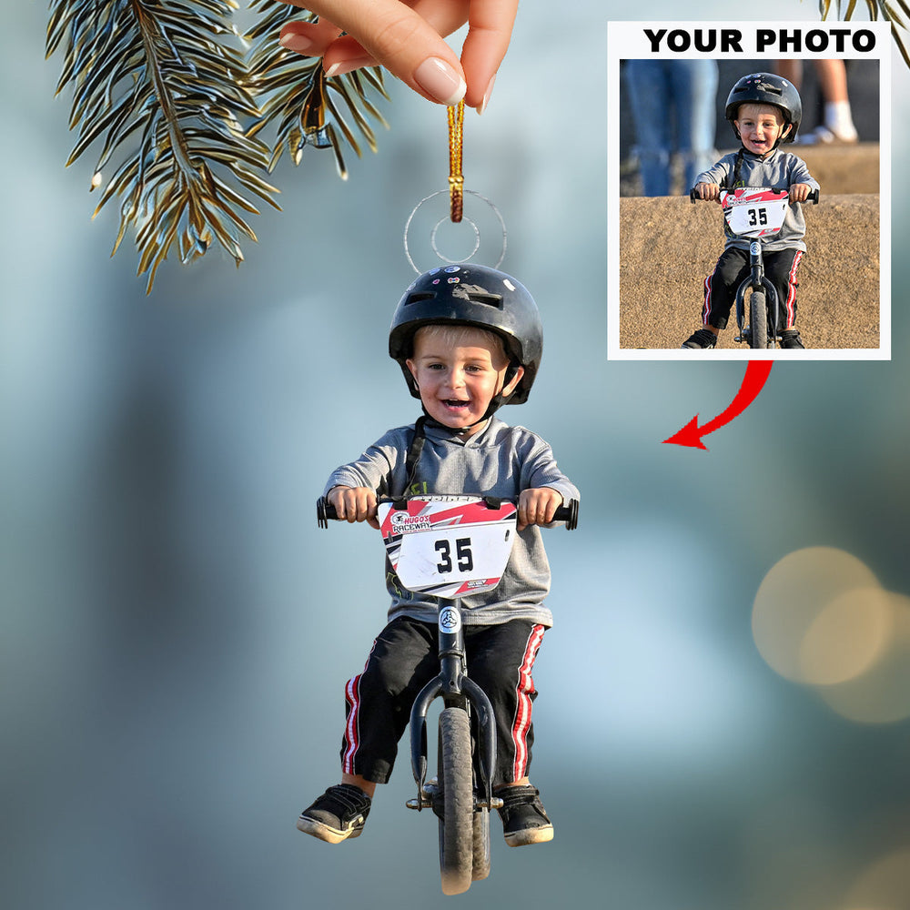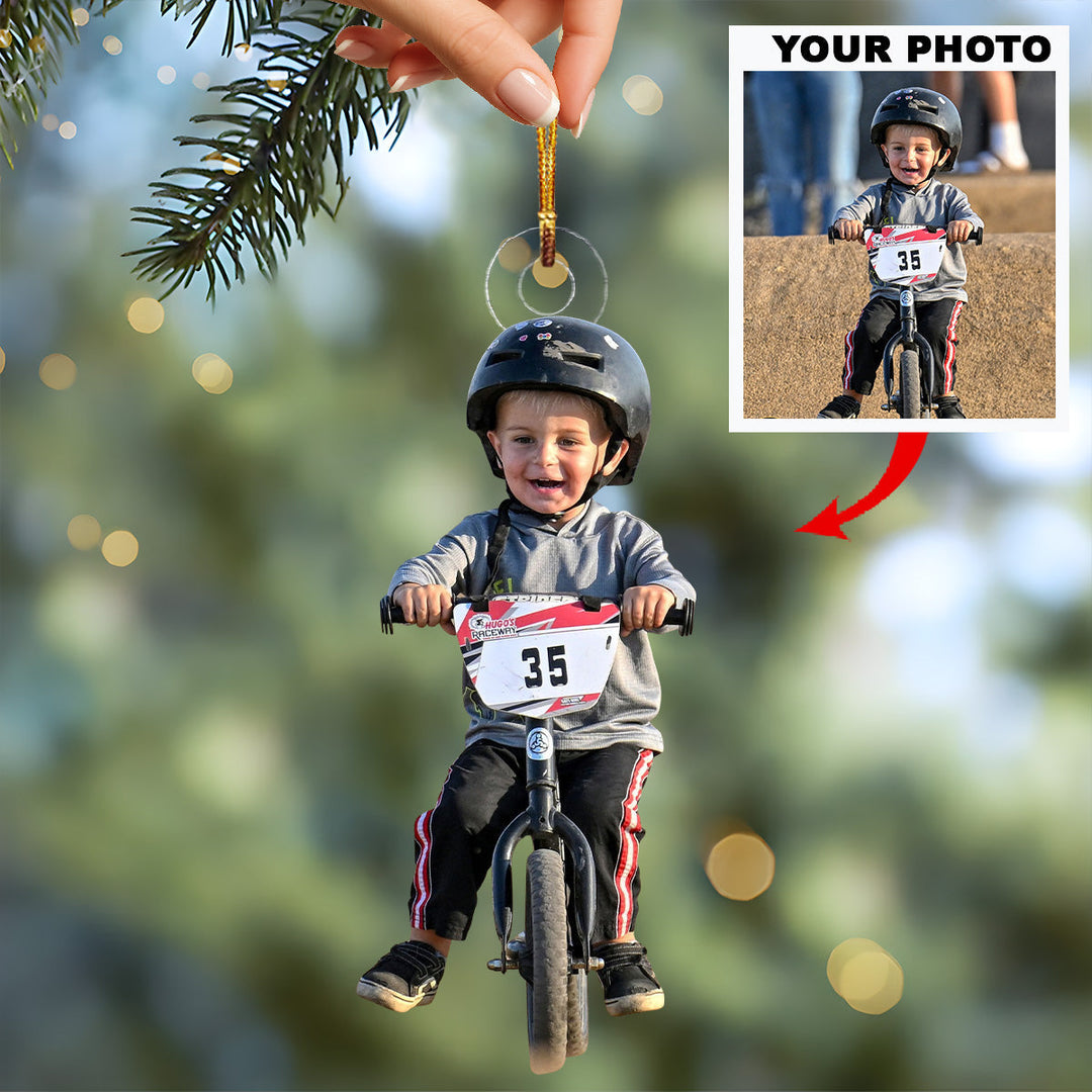 Little Racer - Personalized Photo Mica Ornament - Christmas Gift For Family Members