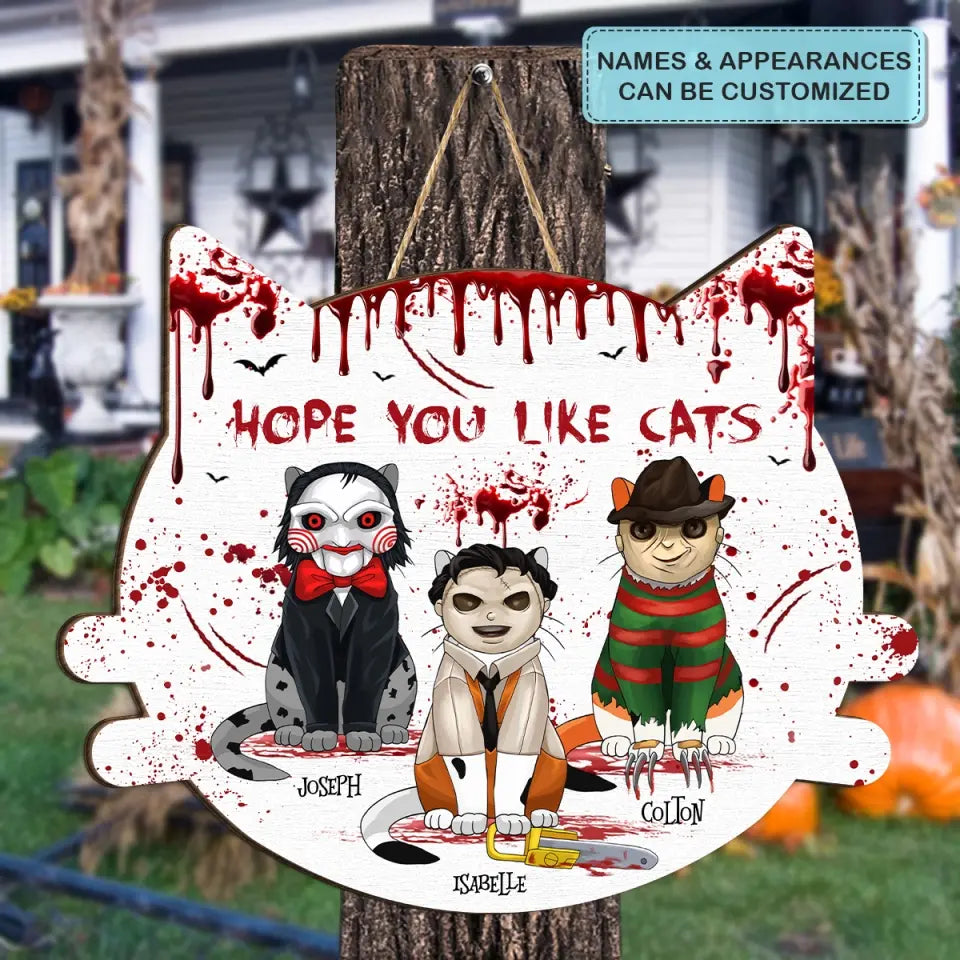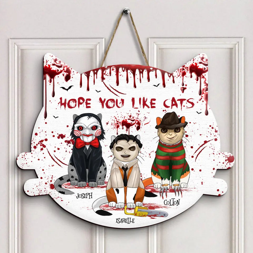 Personalized Custom Door Sign - Halloween Gift For Cat Mom, Cat Dad, Cat Lover, Cat Owner - Hope You Like Cats