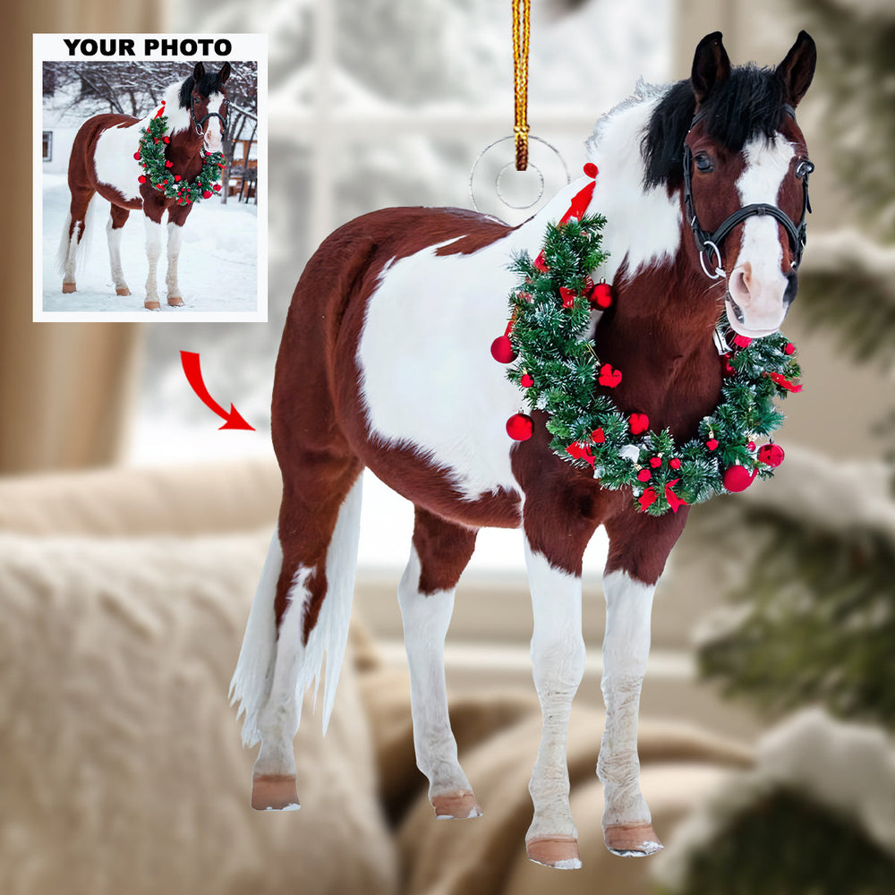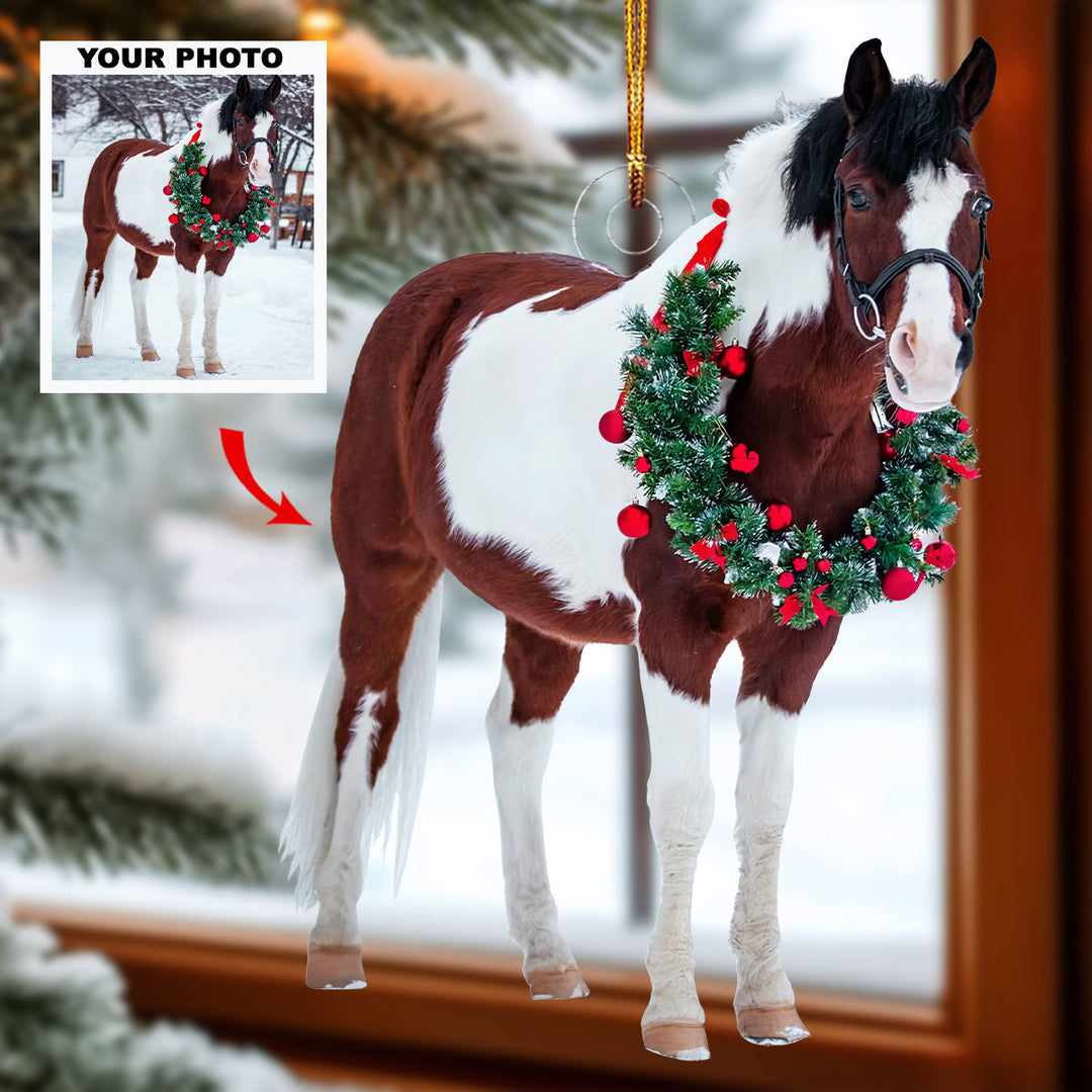 Festive Horse - Personalized Photo Mica Ornament - Gift For Horse Lovers, Horse Owners, Pet Lovers