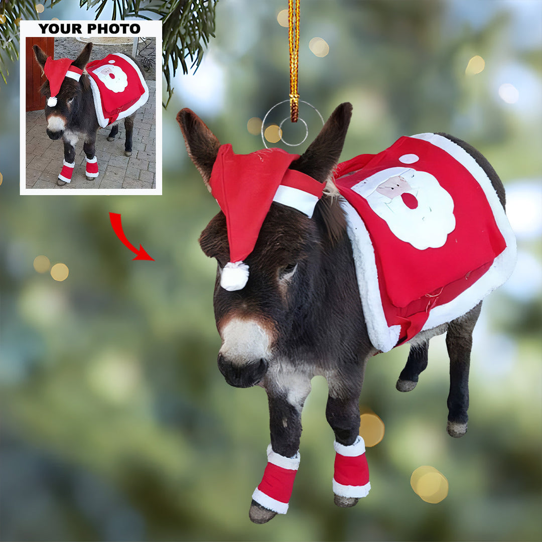 Santa Donkeys - Personalized Photo Mica Ornament - Gift For Donkey Lovers, Donkey Owners, Pet Lovers