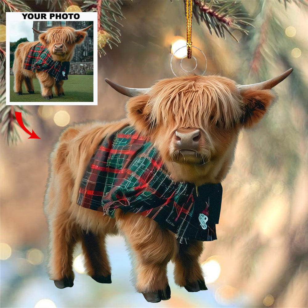 Scottish Charm - Personalized Photo Mica Ornament - Gift For Cow Lovers, Cow Owners, Pet Lovers