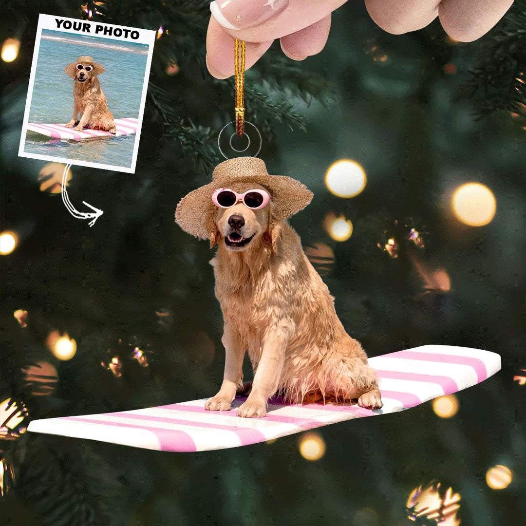 Surfing Dog - Personalized Photo Mica Ornament - Gift For Dog Lovers, Dog Owners