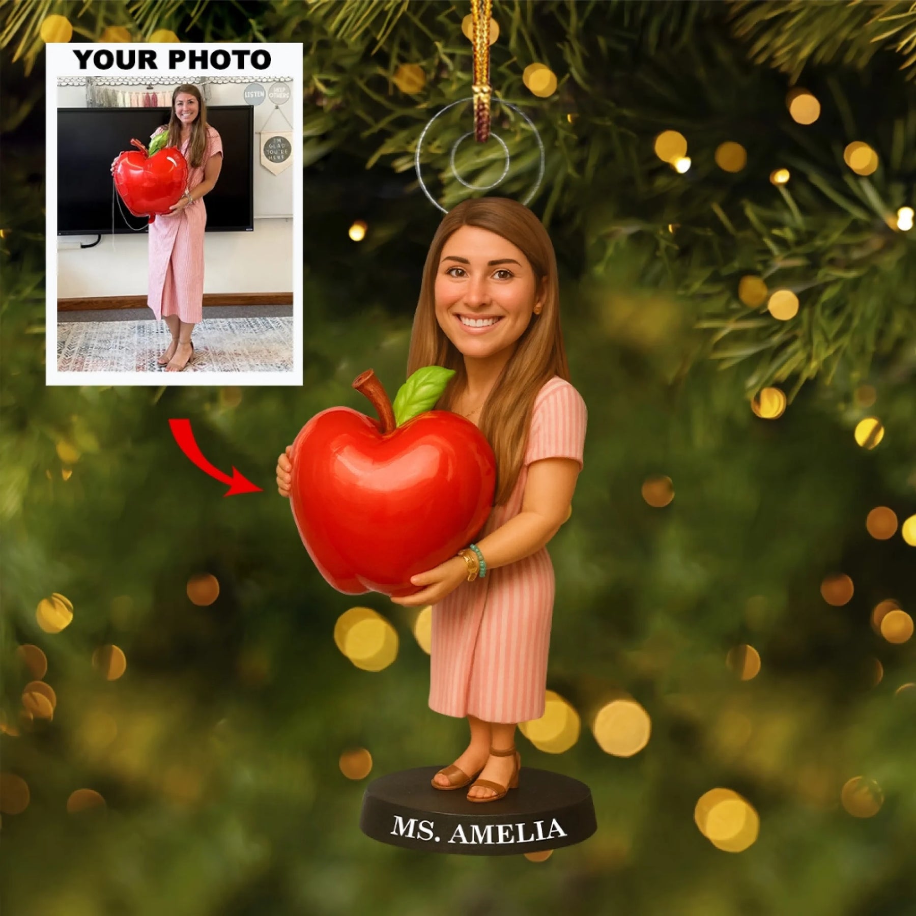 Apple Teacher - Personalized Photo Ornament - Christmas Gift For Teacher AGP0HT013