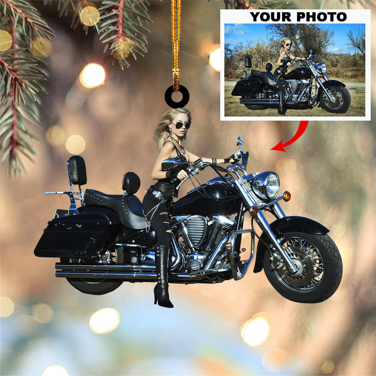 Personalized Photo Mica Ornament - Gift For Biker - Customized Your Photo Ornament V14 ARND005