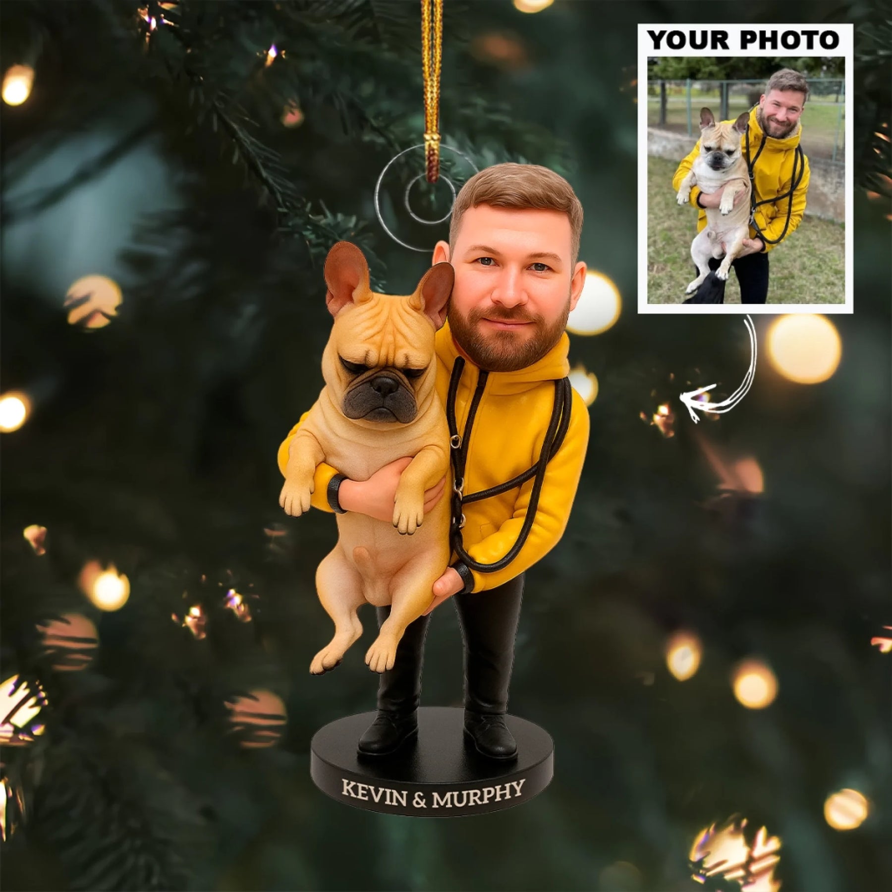 NOTE: Our custom ornaments are made in an artistic cartoon style, following a similar pose and style as shown in our examples.