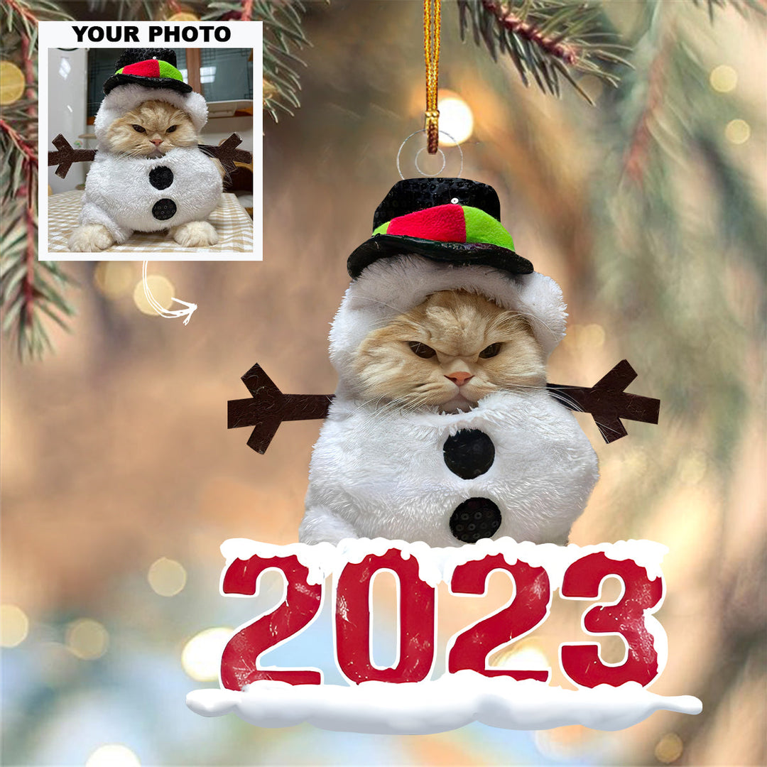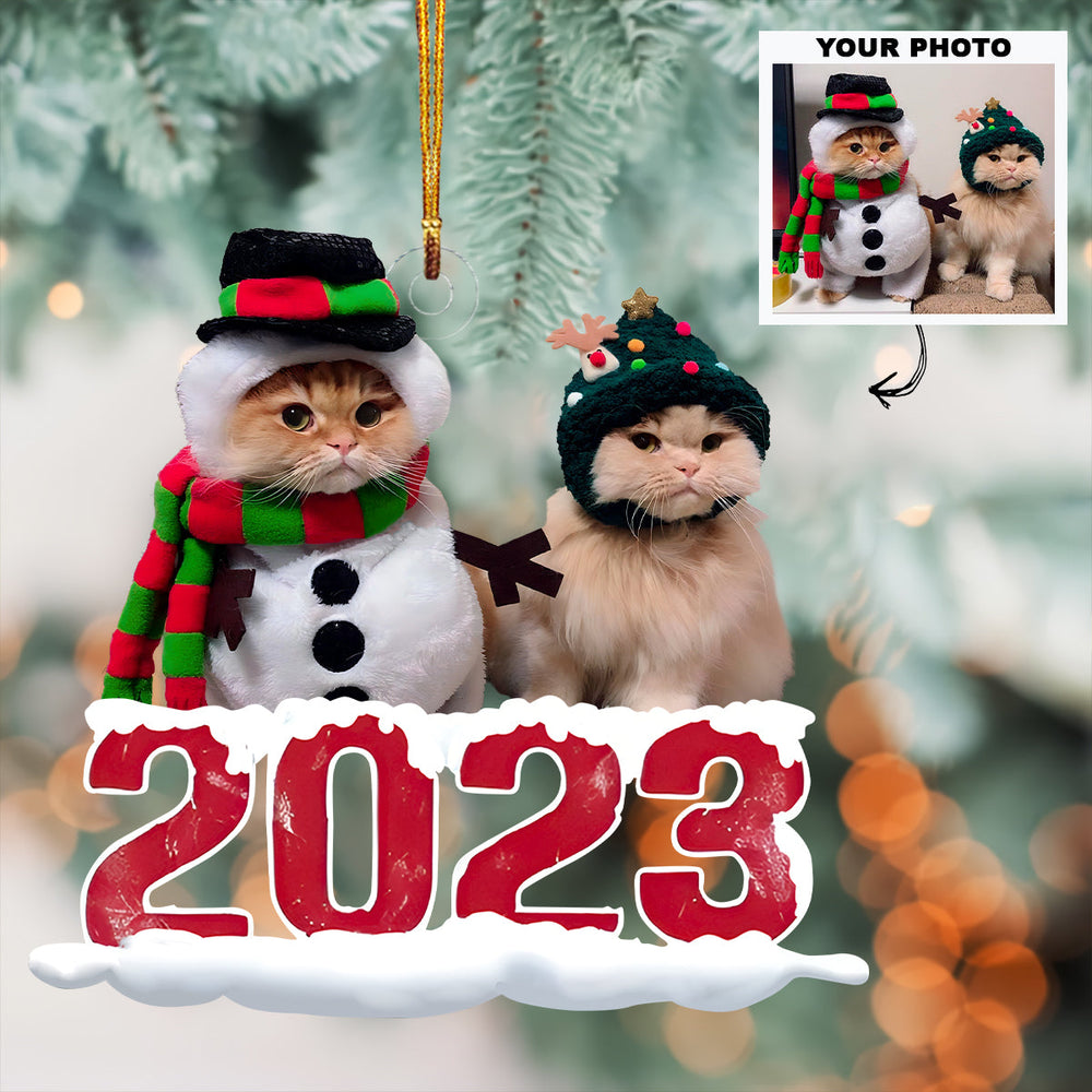 Christmas 2023 Cute Cat - Personalized Custom Photo Mica Ornament - Customized Your Photo Ornament UPL0DM004