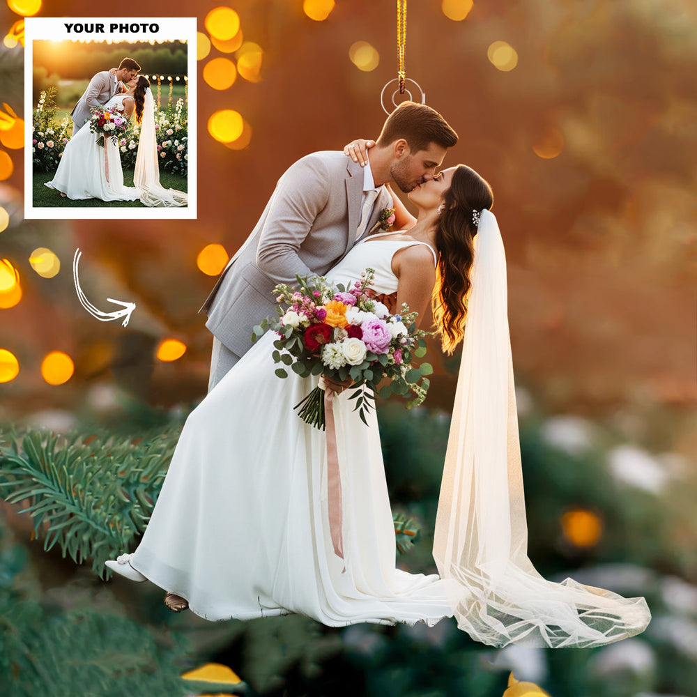 Golden Vows - Personalized Photo Mica Ornament - Customized Your Photo Ornament - Christmas Gift For Couple