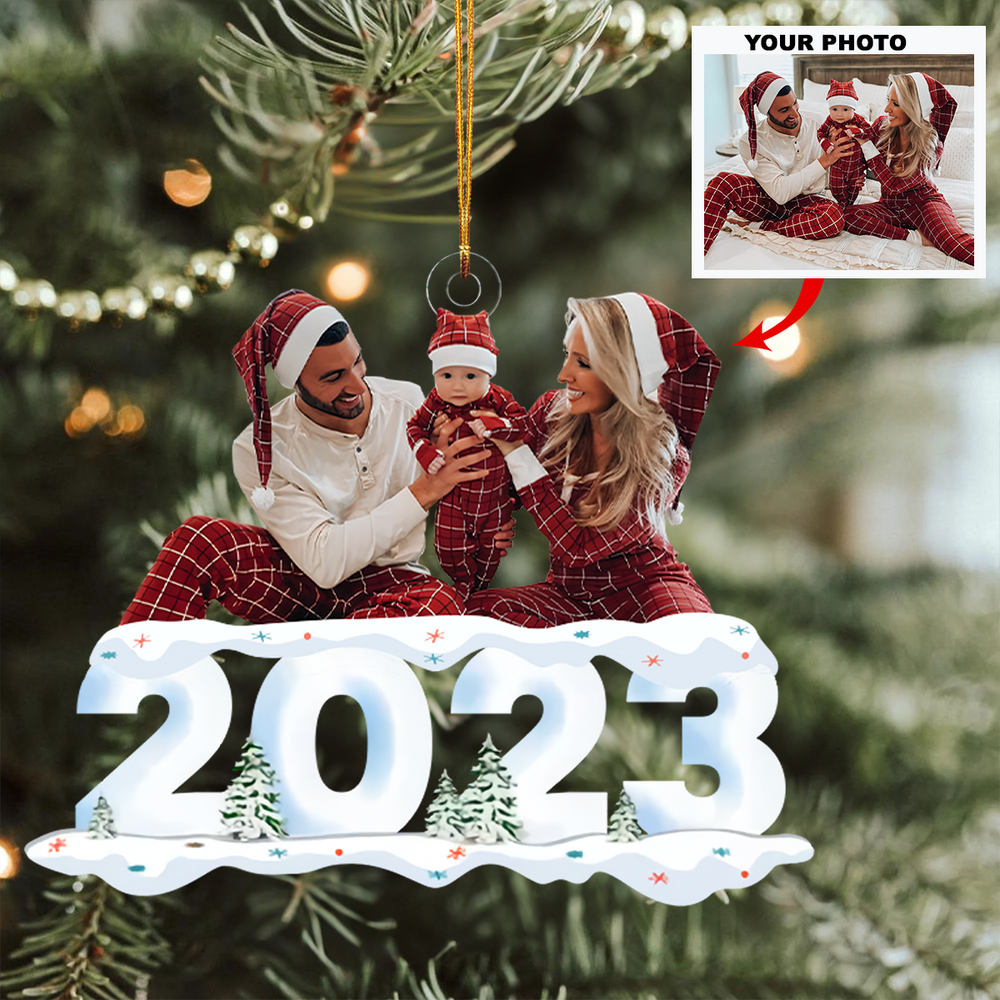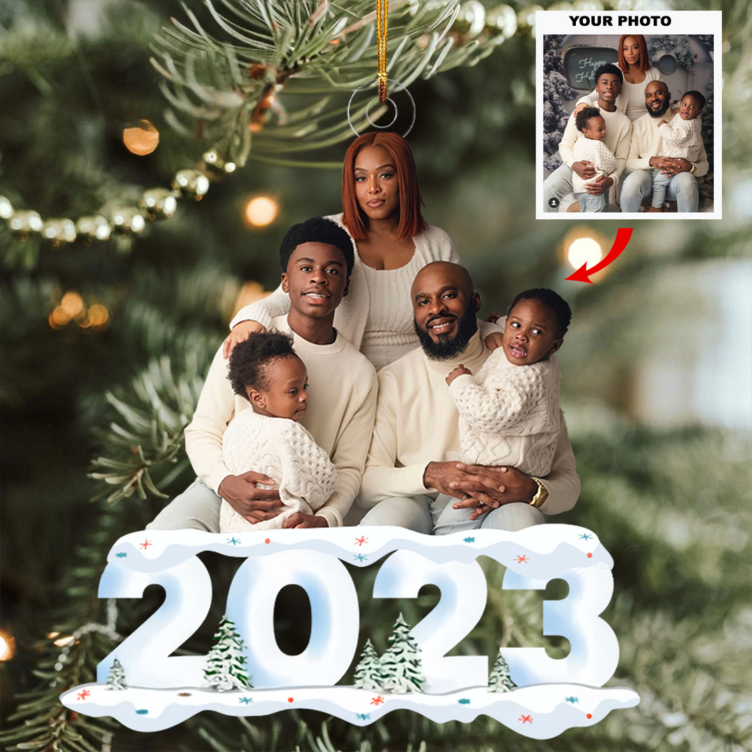 Customized Photo Ornament 2023 Family Snow - Personalized Photo Mica Ornament - Christmas Gift For Family Members, Mom, Dad UPL0HD018
