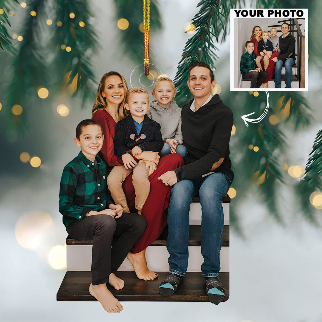 Customized Photo Ornament Christmas Staircase Family Photo - Personalized Photo Mica Ornament - Christmas Gift For Family Members