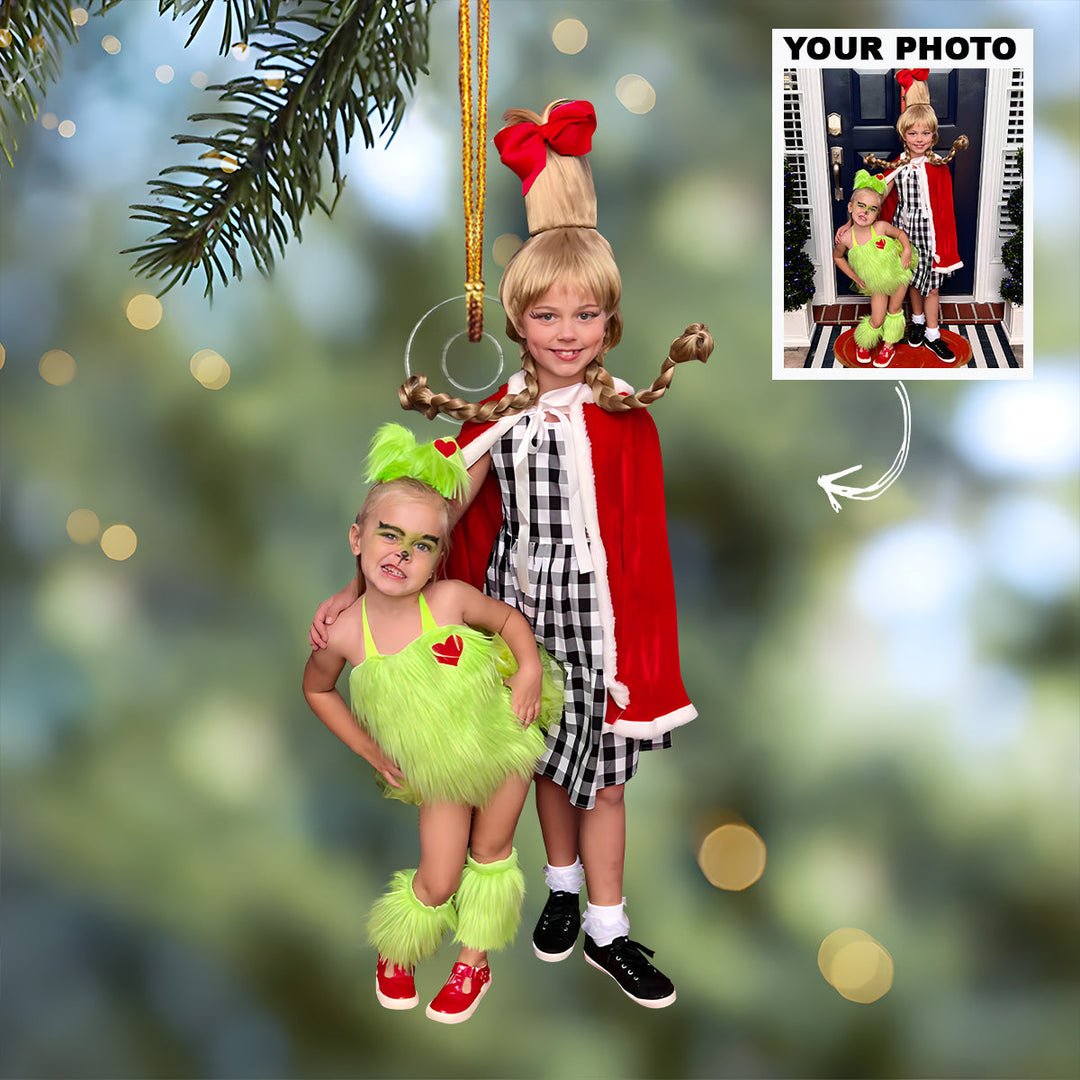 Customized Photo Ornament Christmas Funny Costume - Personalized Photo Mica Ornament - Christmas Gift For Friends, Besties, Family Members