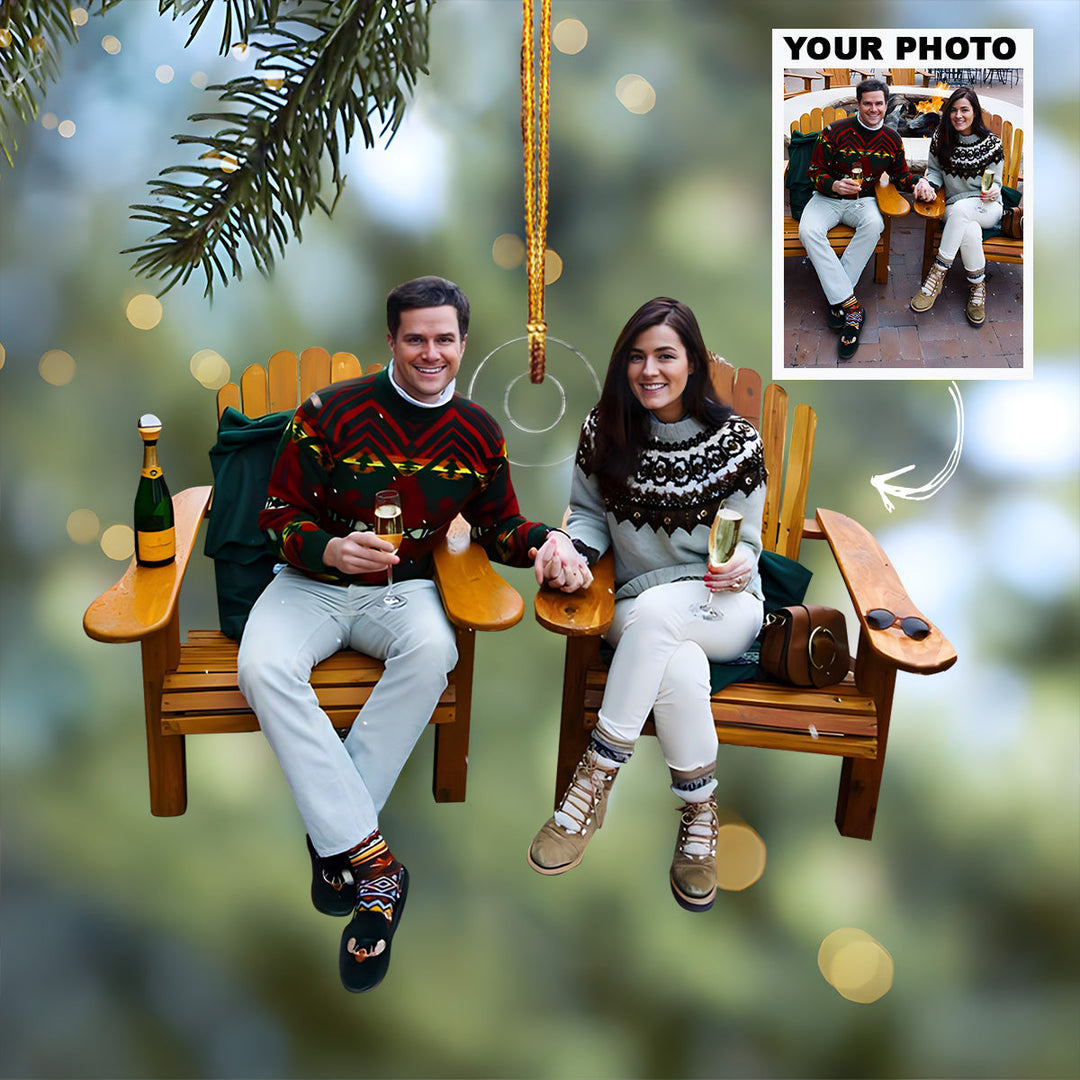 Customized Photo Ornament Drinking Couple - Personalized Photo Mica Ornament - Christmas Gift For Family Members