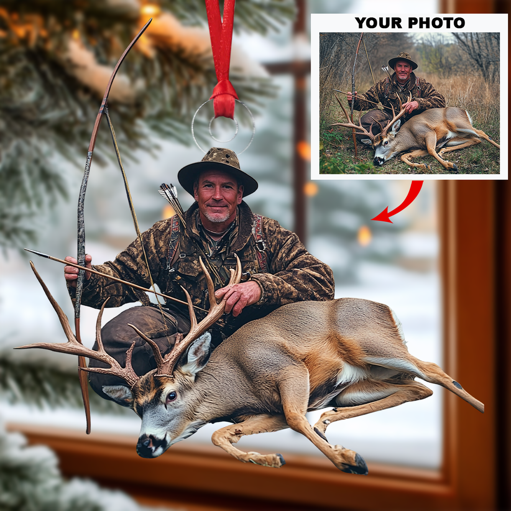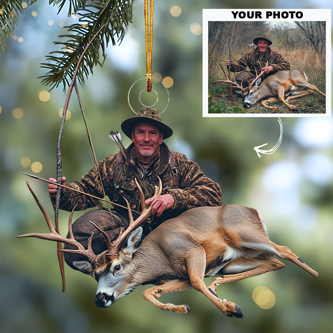 Customized Photo Ornament Deer Hunting - Personalized Photo Mica Ornament - Christmas Gift For Hunter
