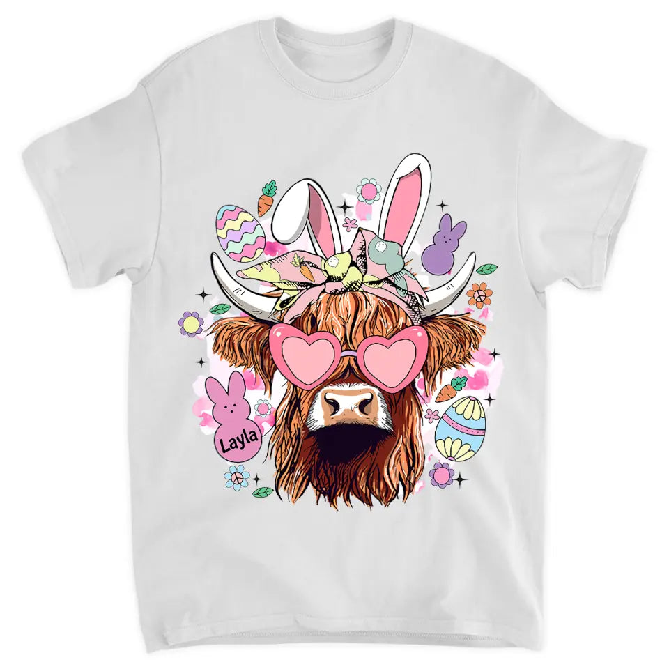 Bunny Highland Cow Retro - Personalized Custom T-shirt - Gift For Family, Family Members